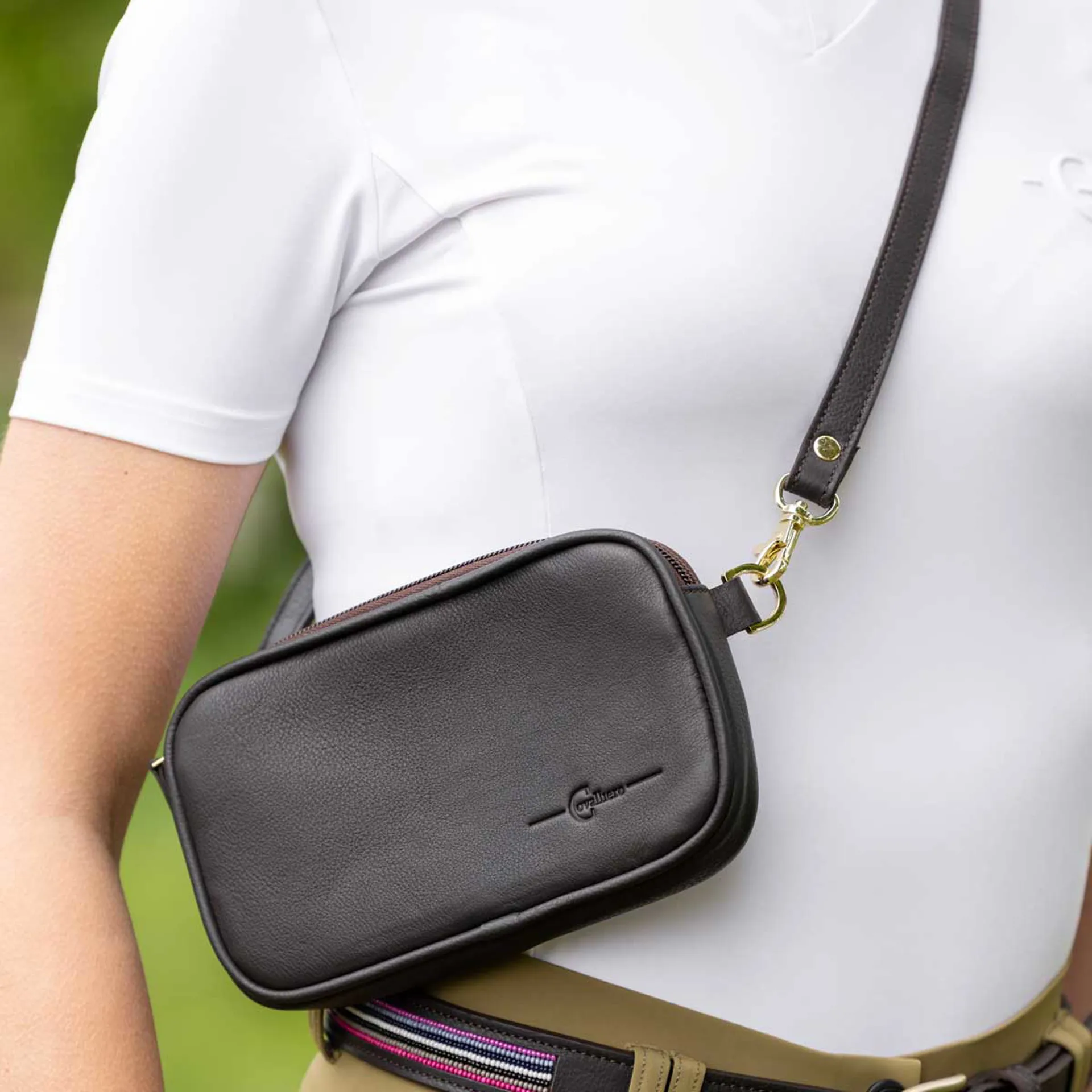 The Covalliero Leather Waist Bag is a great accessory to wear out riding, when walking the dogs, or even when popping into town. Super stylish and just as practical, it provides a secure space to carry your phone, small essentials, and (of course!) some horse treats.
