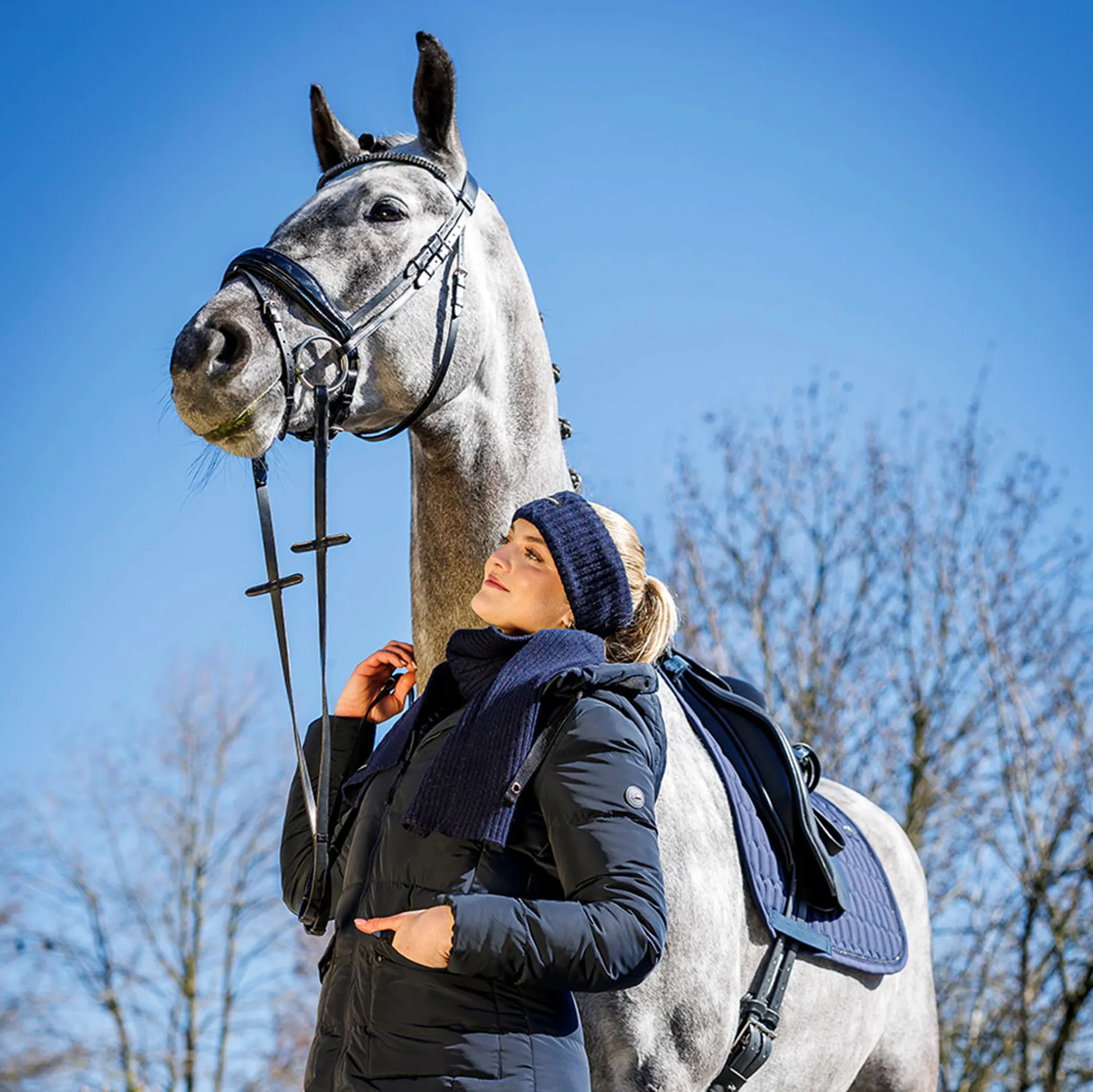 Question(s) answered about Schockemohle Braided Style Scarf - Dark Navy