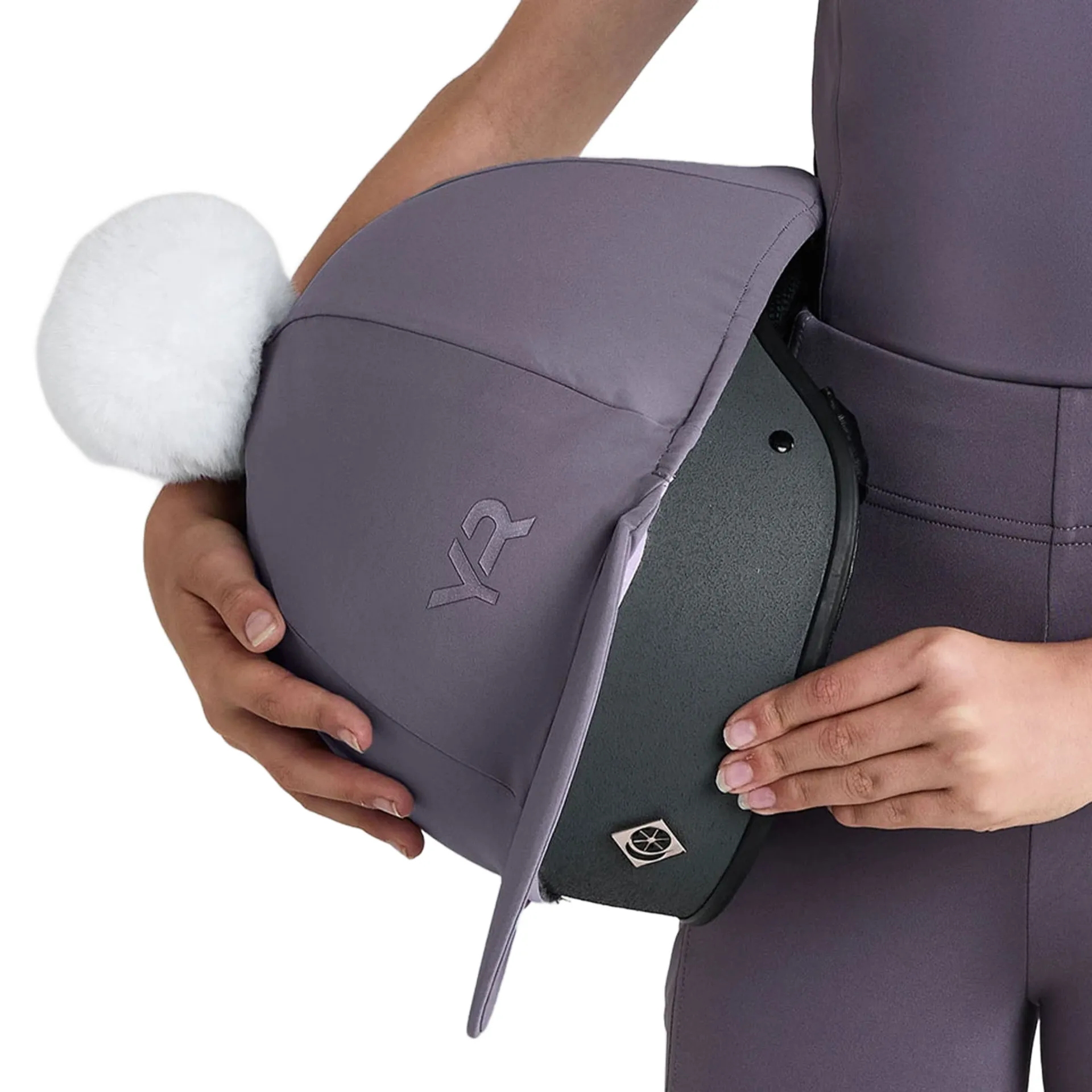 Featuring a sleek design, bold AD logo, and a fun black faux fur pom pom, it fits securely over most helmets for a polished and playful look in the saddle. The Aztec Diamond Young Rider Hat Silk in mocha adds a stylish touch to any riding outfit.