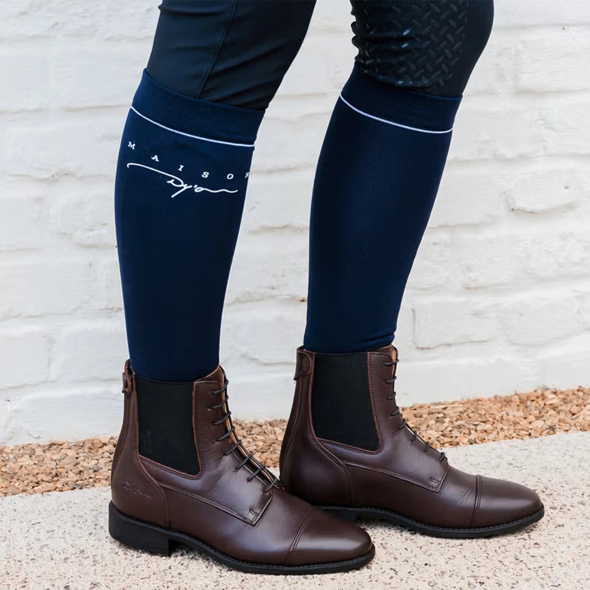 The Dy'On Unisex Riding Socks are designed for riders who demand performance and style. Lightweight yet durable, these ultra-thin socks slide easily under boots or chaps with no bulk or bunching, while the high elastic design provides a secure fit for every leg type. Perfect for riding, yard work, or everyday wear, they’re finished with the subtle Maison Dy’On logo for a classic, premium touch.