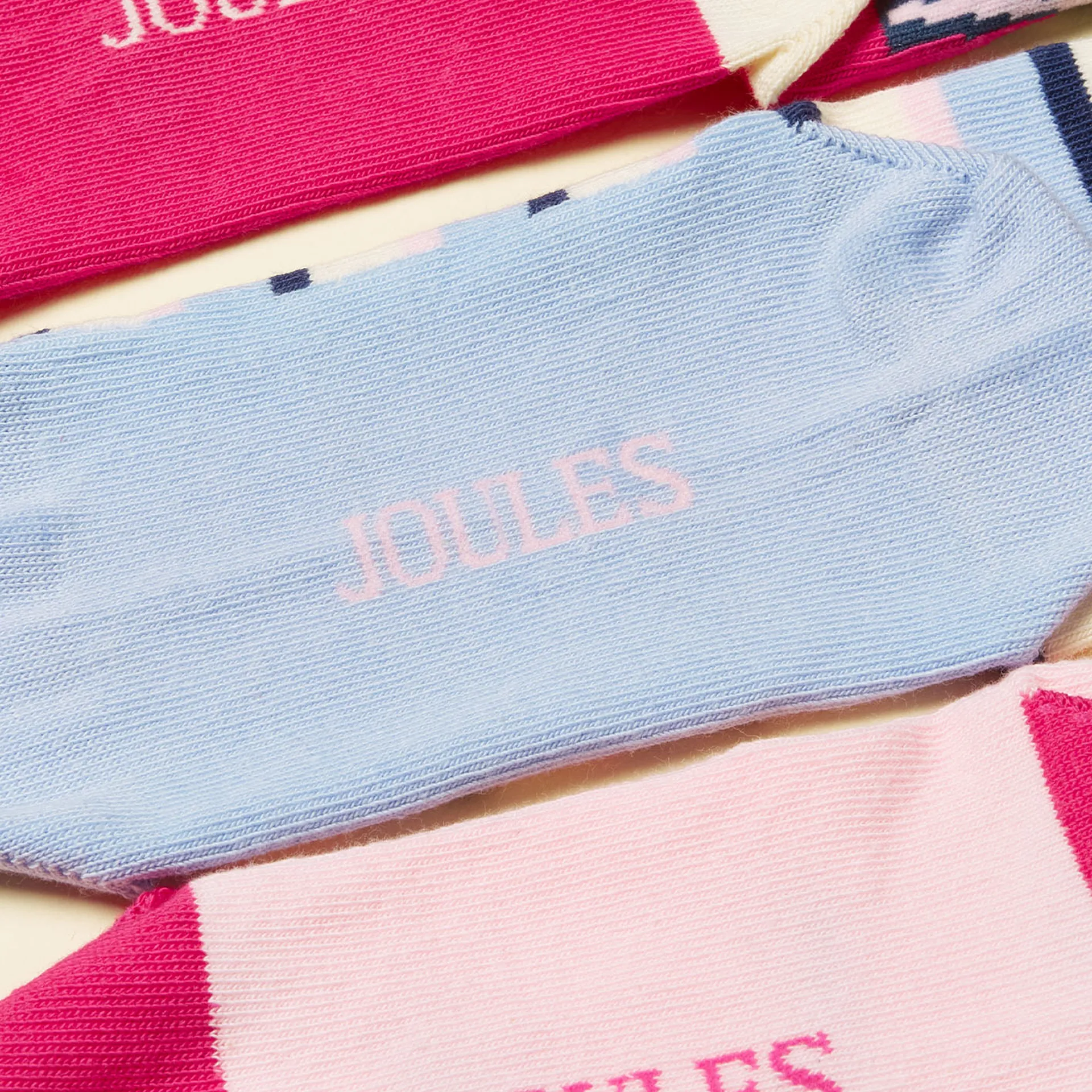 Question(s) answered about Joules Neat Feet Junior Girls Socks 3 Pack - Hold Your Horses/Pink/Blue