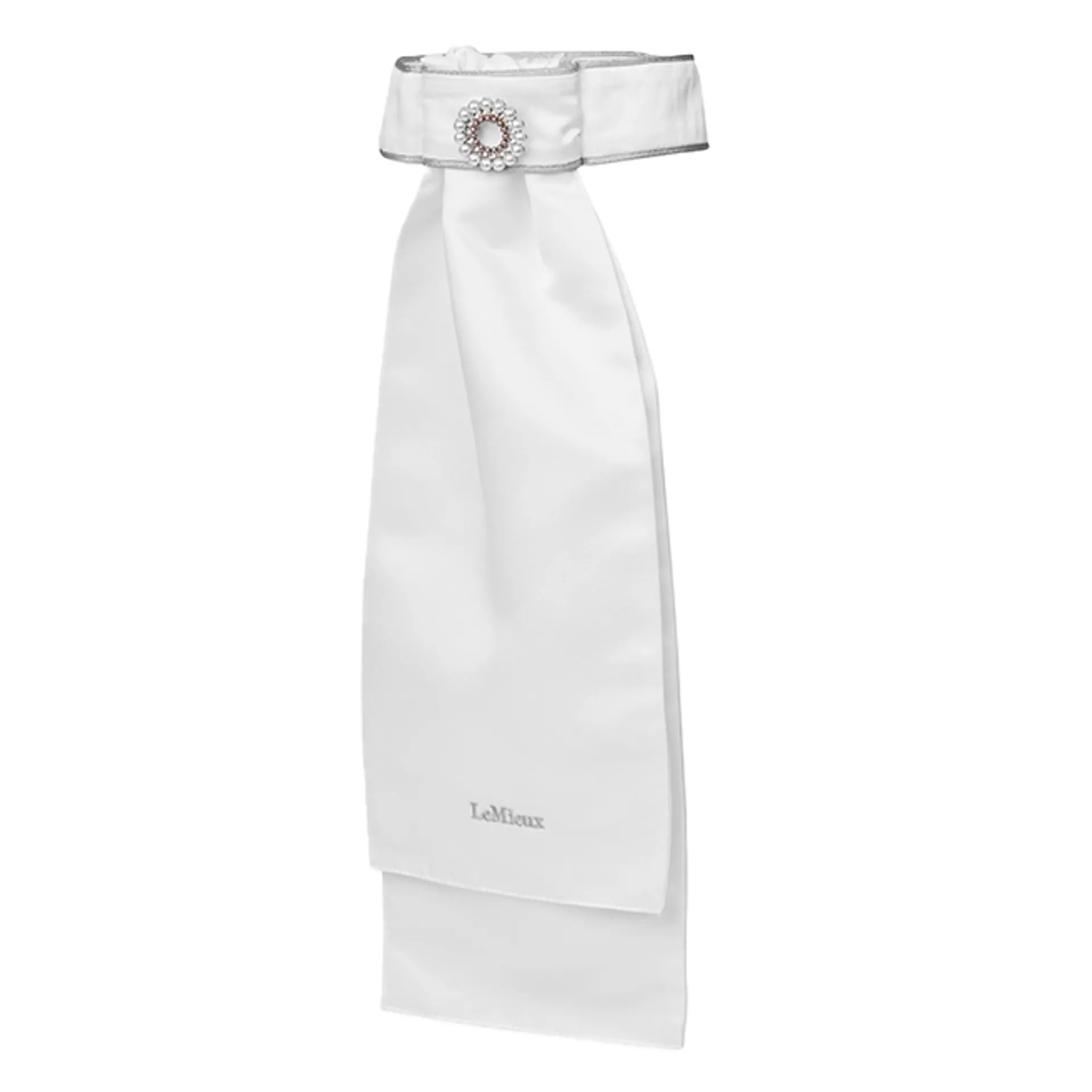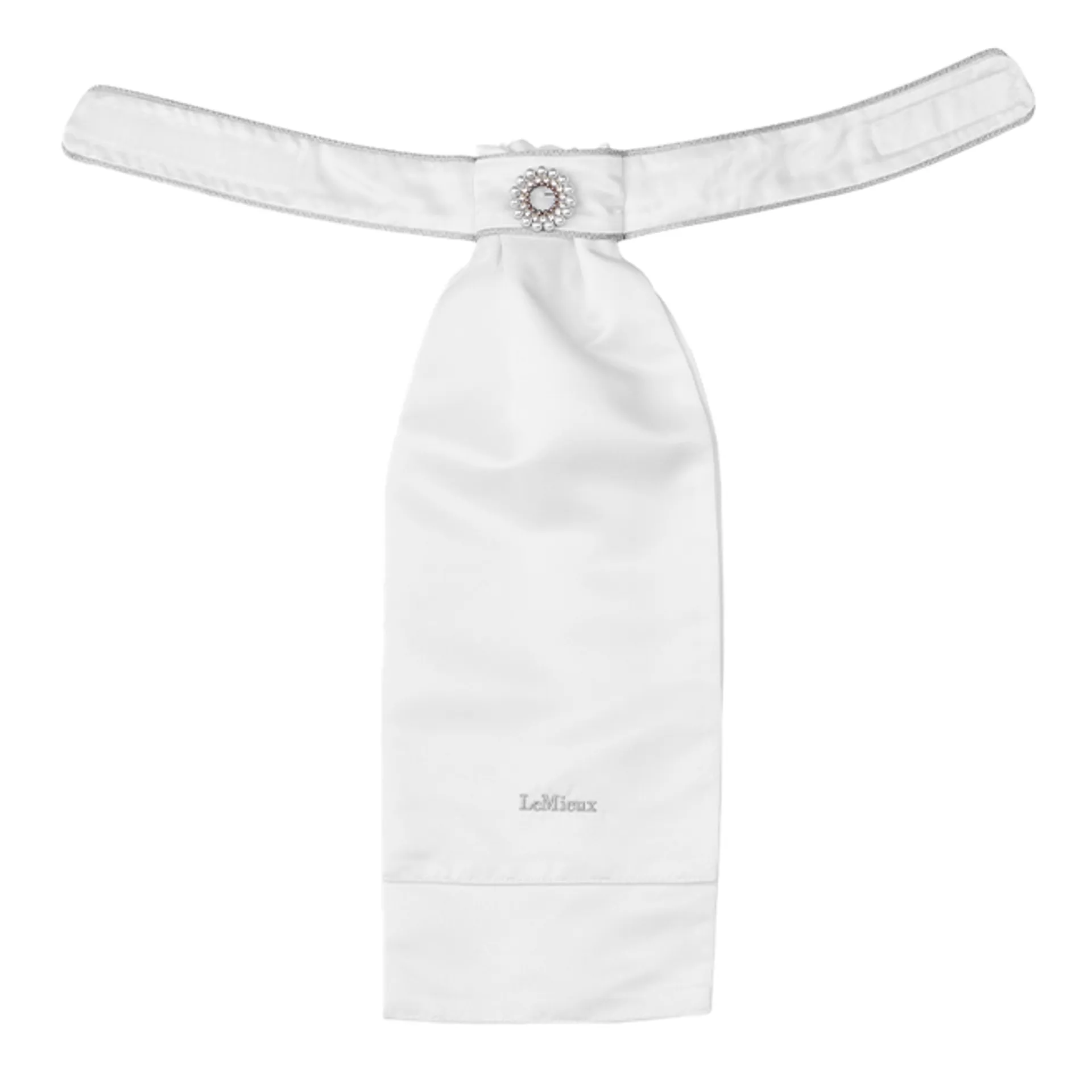 Featuring a fixed decorative beaded stock pin and a convenient hook-and-loop closure, the LeMieux Sparkle Stock is a ready-tied design made from soft satin fabric, featuring a ruched front and embroidered trim.