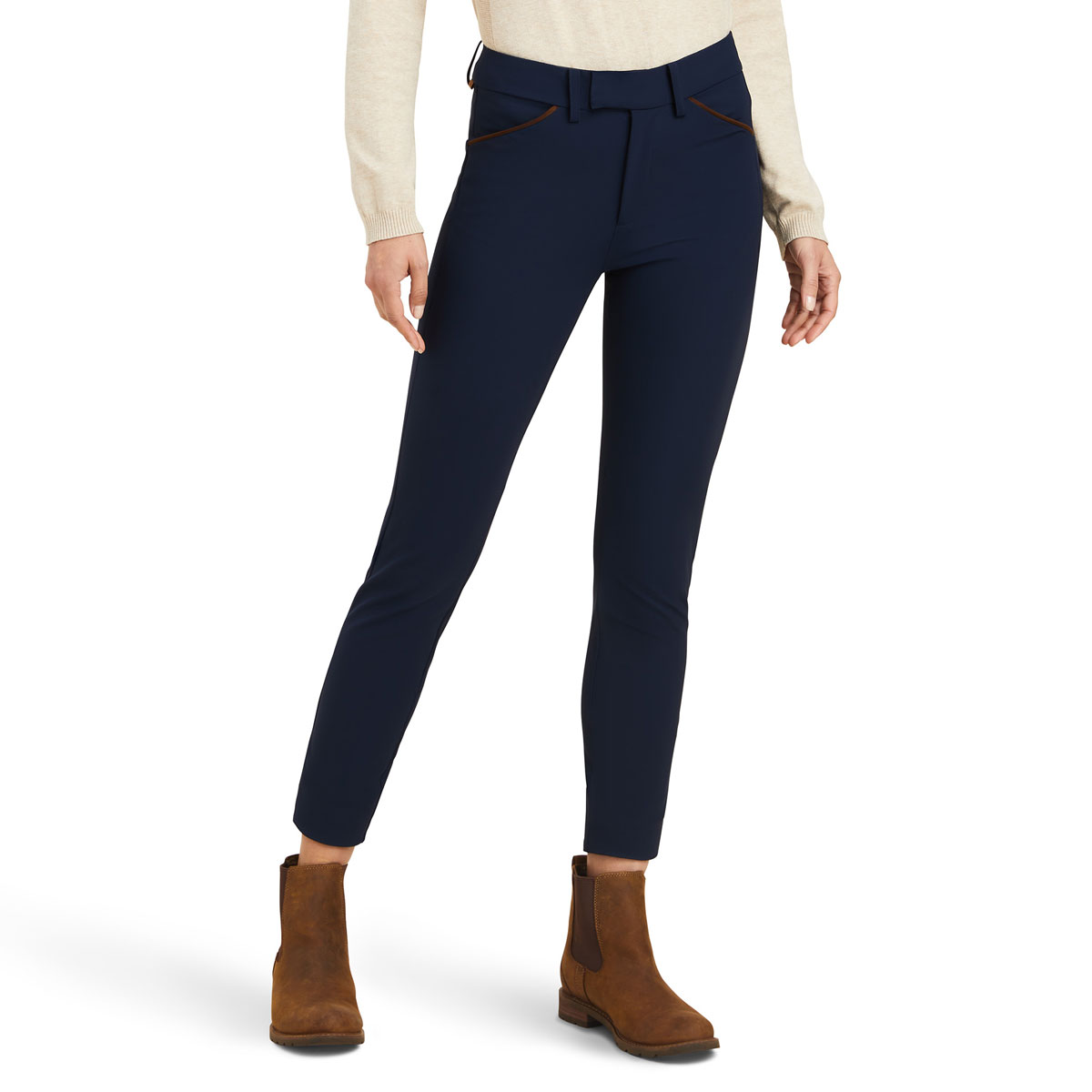 A beautiful design that blends equestrian styling with a casual look seamlessly. With traditional breech-like detailing, these midweight stretch-knit trousers look superb while ensuring high levels of comfort throughout wear.