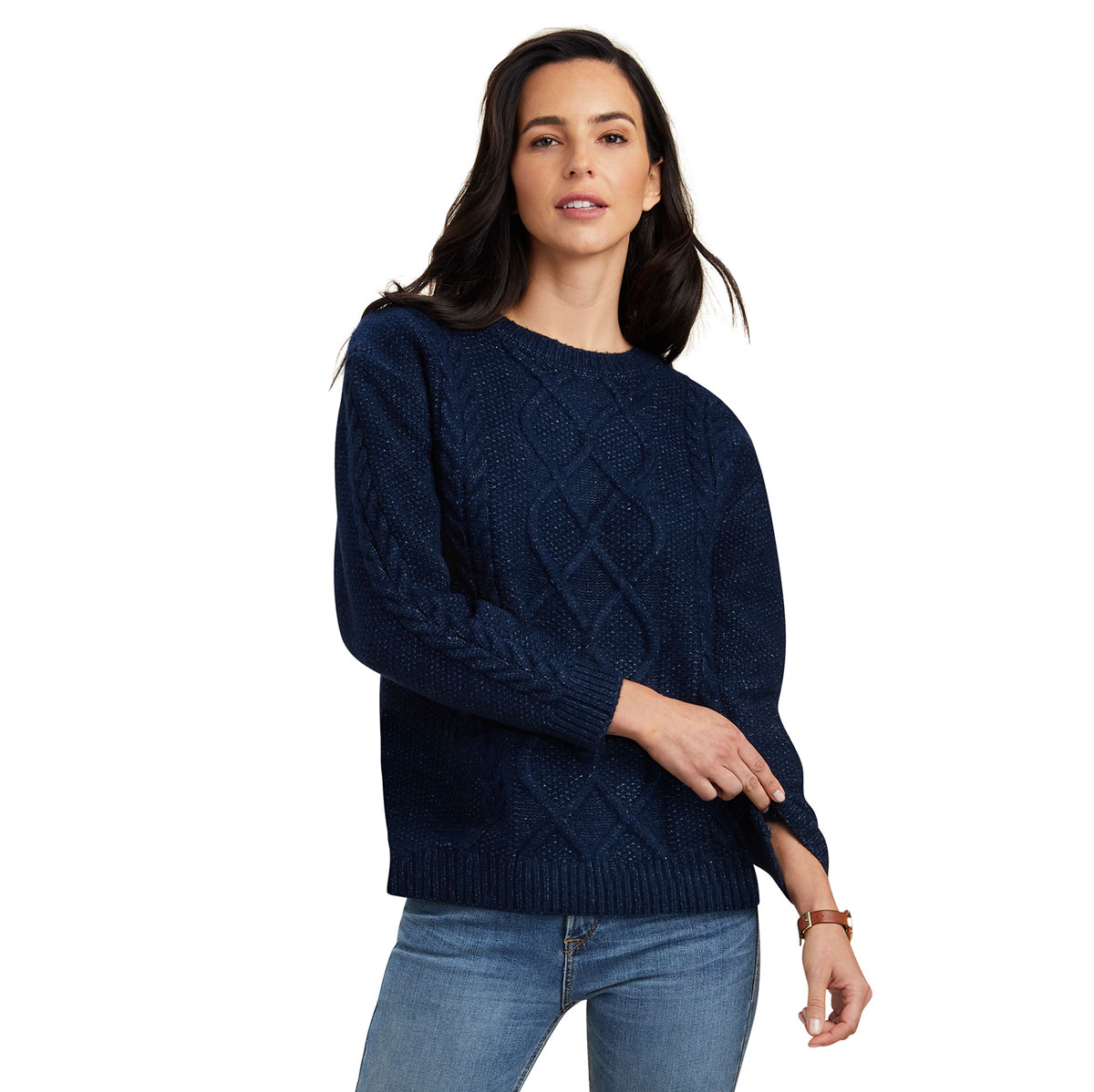 This is a cosy choice for when the temperatures drop and need extra warmth. Team with jeans for day-to-day errands or dress it up for casual evening occasions. The cable knit design and relaxed silhouette will maximise your comfort and chic style.