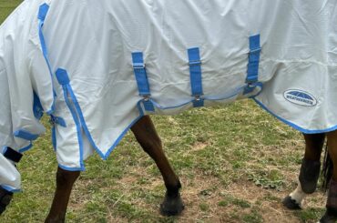 Find Kate’s tried and tested review of the WeatherBeeta Sweet Itch Shield Combo Neck Fly Rug White/Blue