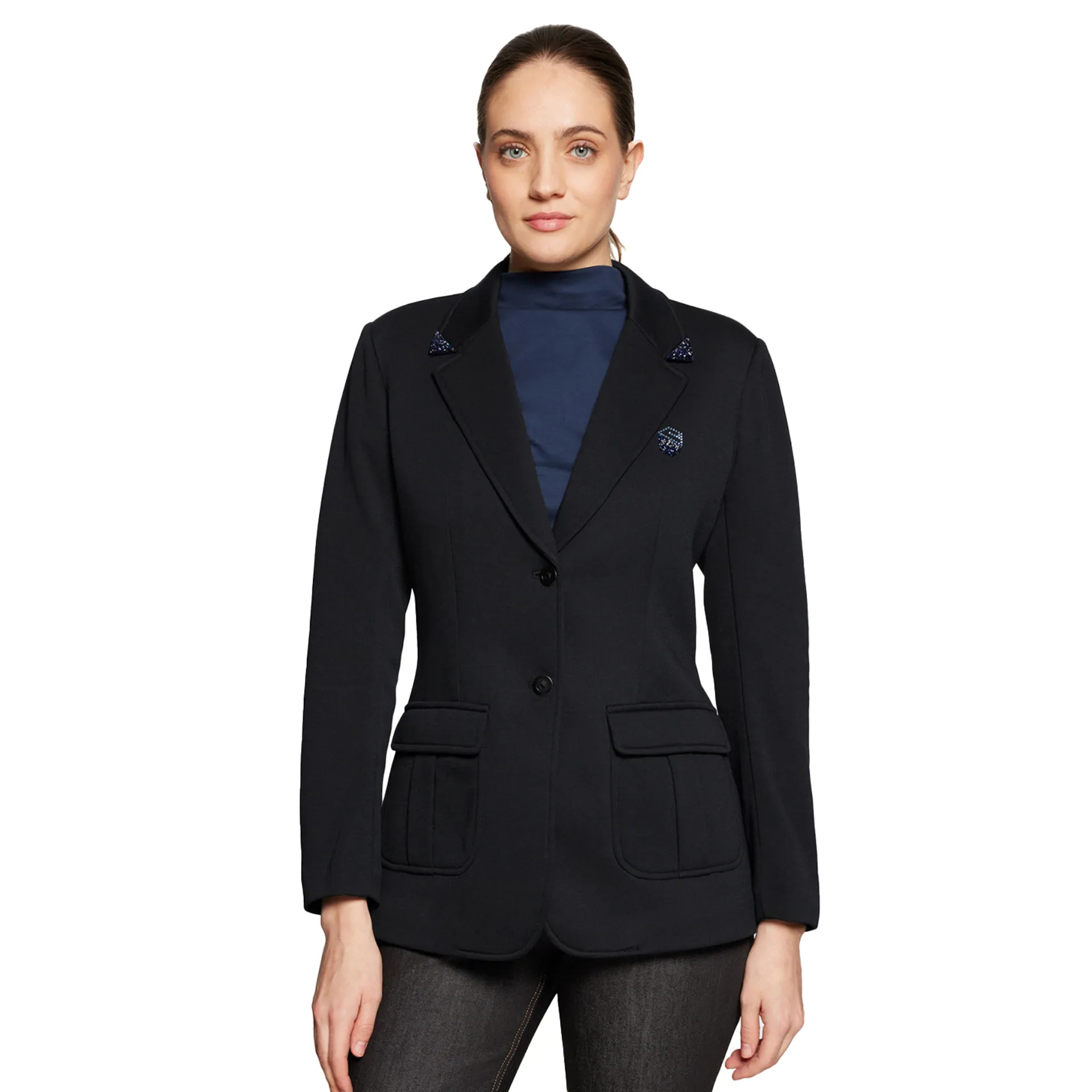 Perfect for riders seeking refined style on and off the saddle, the Samshield Maxime Elegant Womens Blazer combines luxury and practicality with Swarovski® crystal details, Polartec® THERMAL PRO® warmth, and breathable fabric.