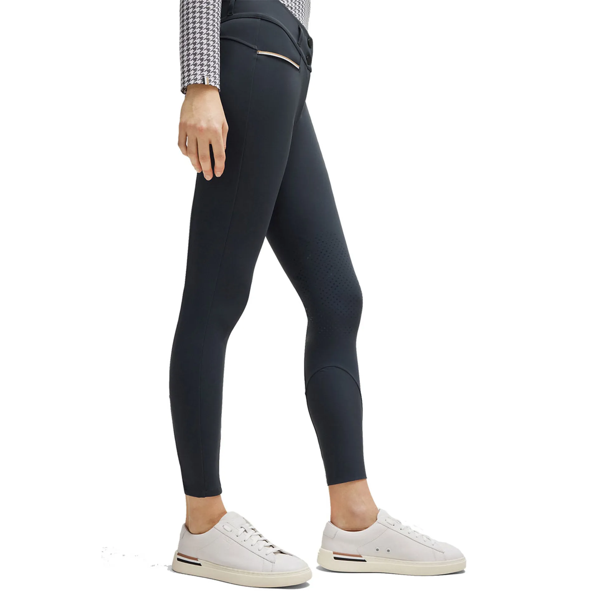 Quick-drying, lint-free, and easy to clean, The BOSS Equestrian Hannah High Waist Knee Grip Breeches blend modern style with functionality. Featuring a soft ergonomic knee grip, subtle BOSS branding and handy pockets on the hips.