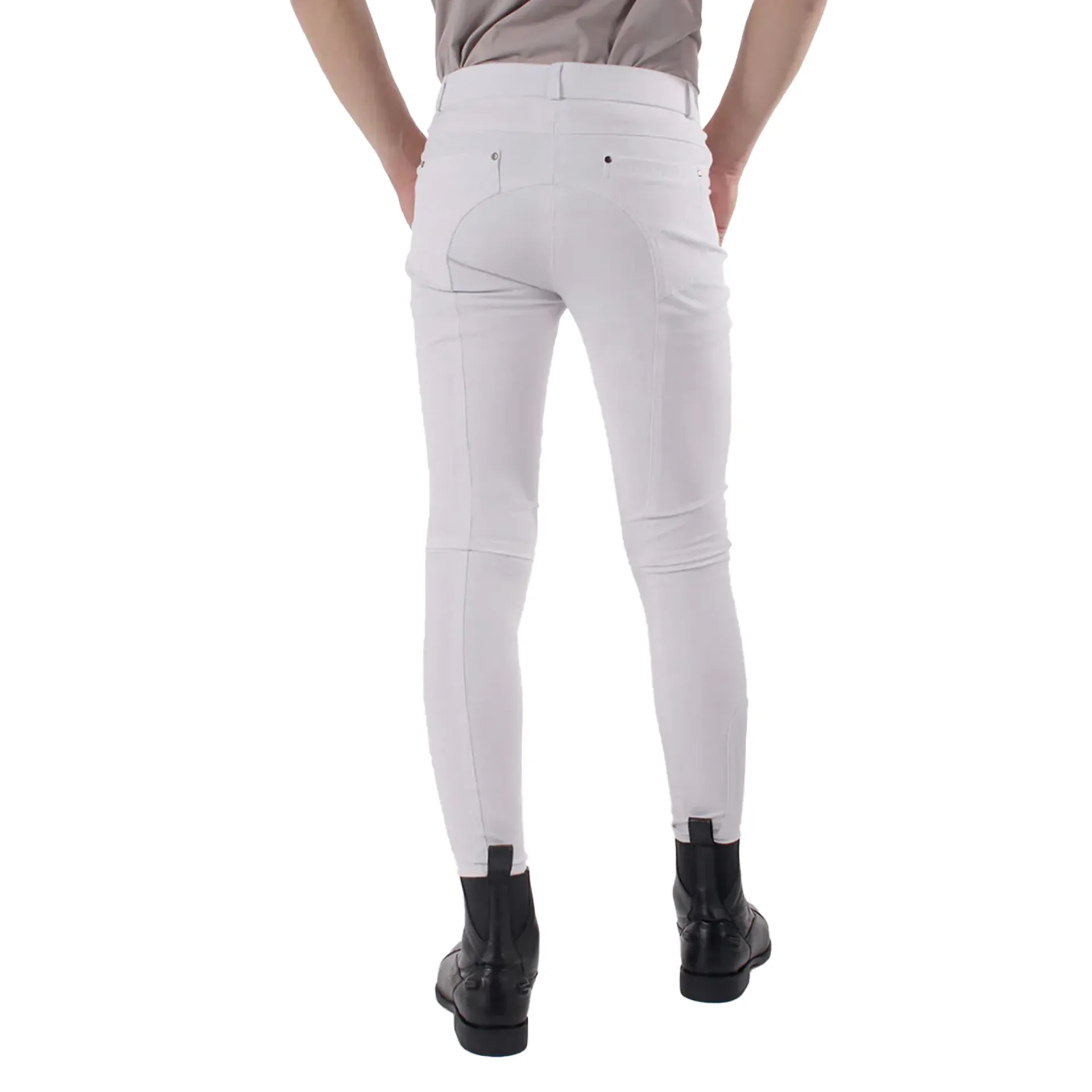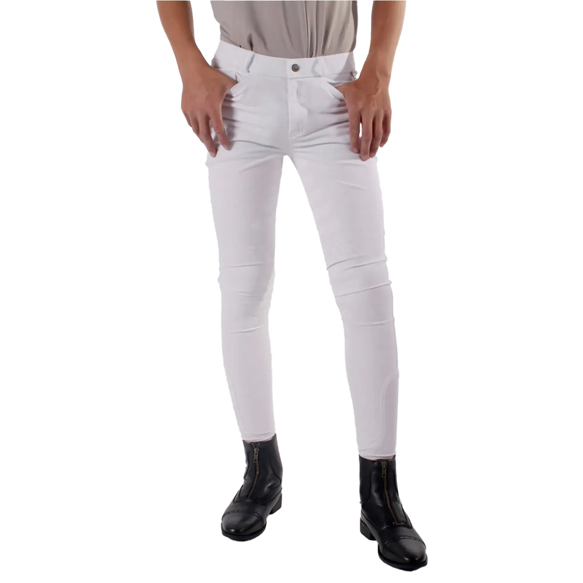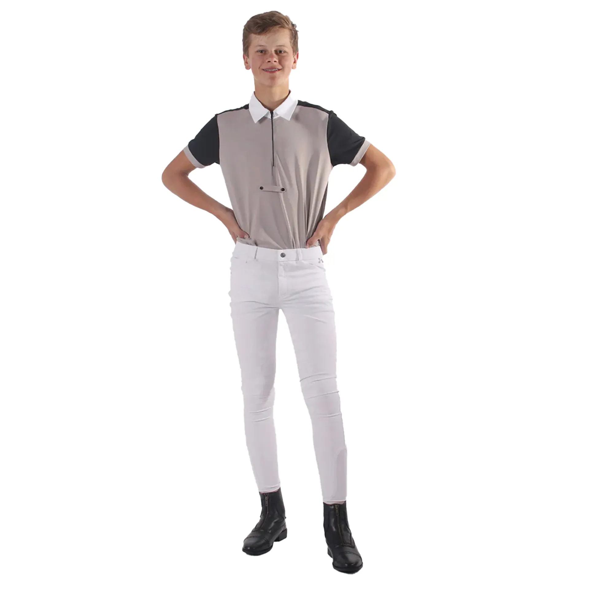 QHP Fillip Knee Grip Junior Boys Competition Breeches - White