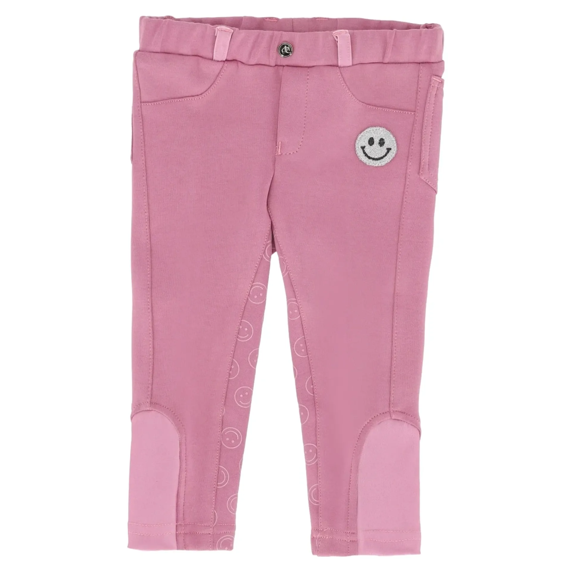 Designed for the smallest riders, the QHP Rosalynn Junior Girls Breeches feature a full grip seat with a fun smiley print, ensuring security and style for their first rides.