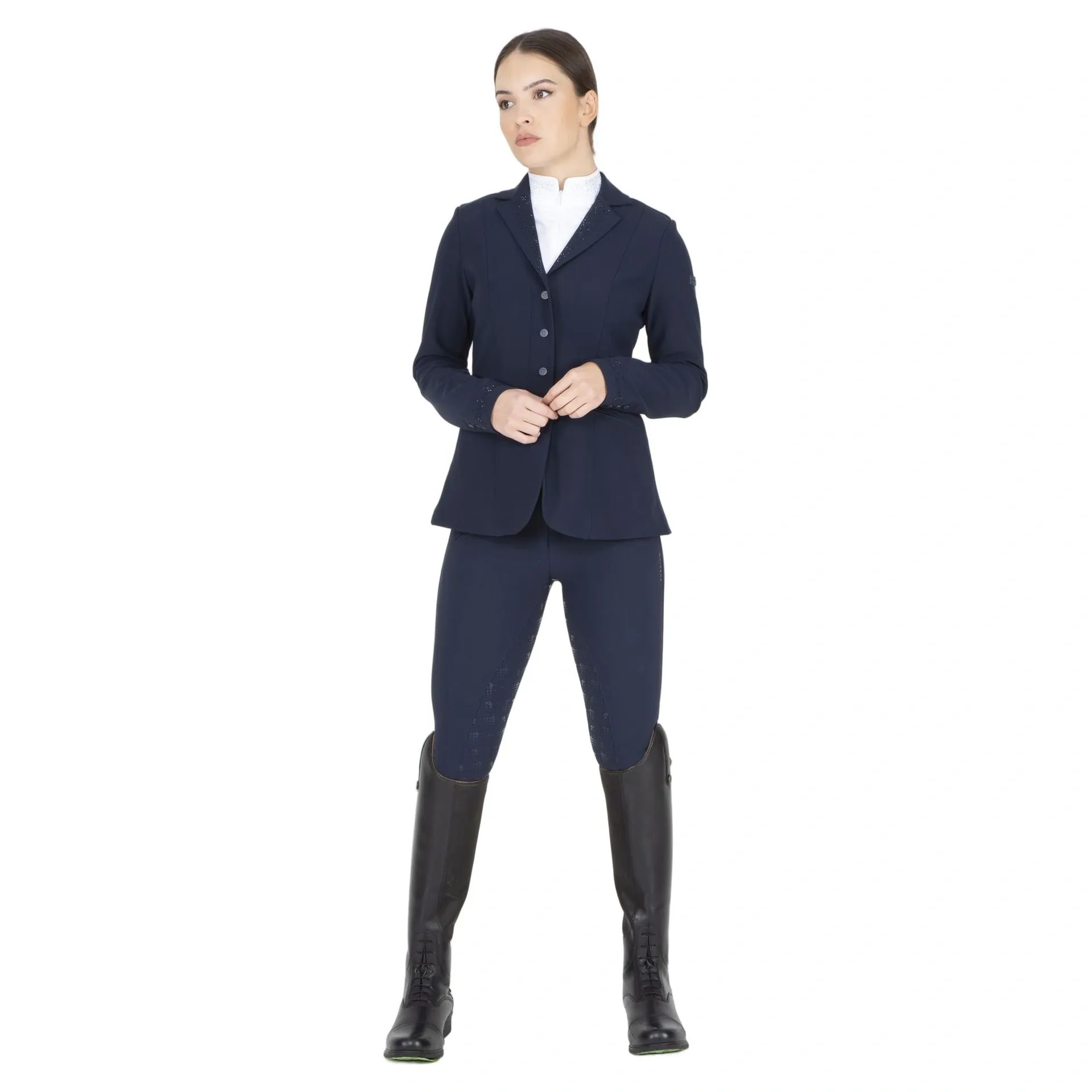 Built for elite competition with moisture-wicking fabrics and in-motion stretch, the Aubrion Optima GX Womens Show Jacket provides a sleek, shape-enhancing silhouette. It ensures you remain comfortable and polished in the saddle.
