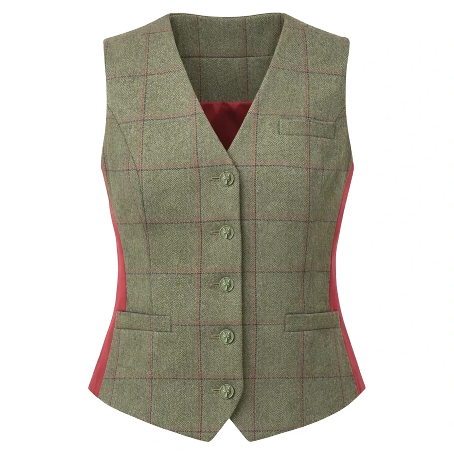 Question(s) asked regarding Equetech Launton Deluxe Womens Tweed Competition Waistcoat - Green