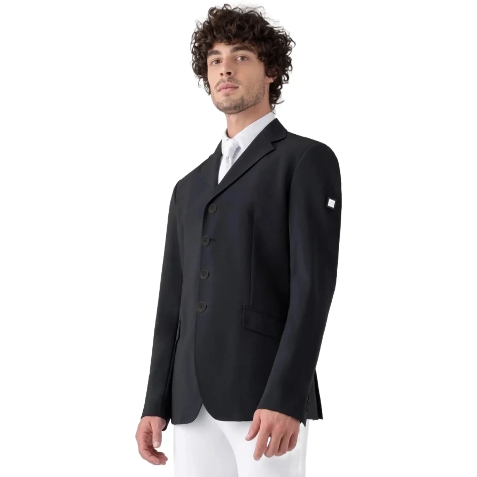 The unstructured design and B-MOVE fabric of the Equiline Volt Men's Unlined Show Jacket provide exceptional lightness and freedom of movement, ensuring comfort and style during competition.
