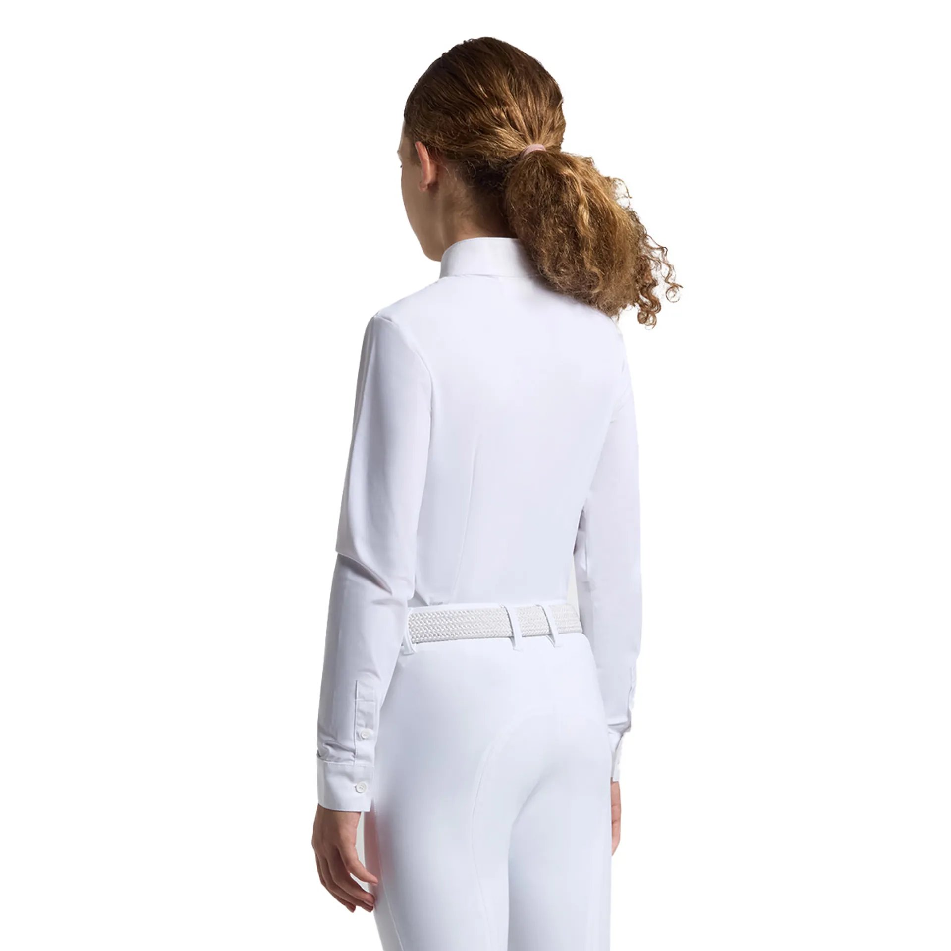 The Cavalleria Toscana CAA053 Junior Girl's Show Shirt is designed for young riders, combining the formal aesthetics required for competitions with the functionality of sport-specific fabrics. Made from high-performance technical fabric, this shirt offers an elegant, comfortable, and lightweight fit, making it ideal for layering under a show jacket.