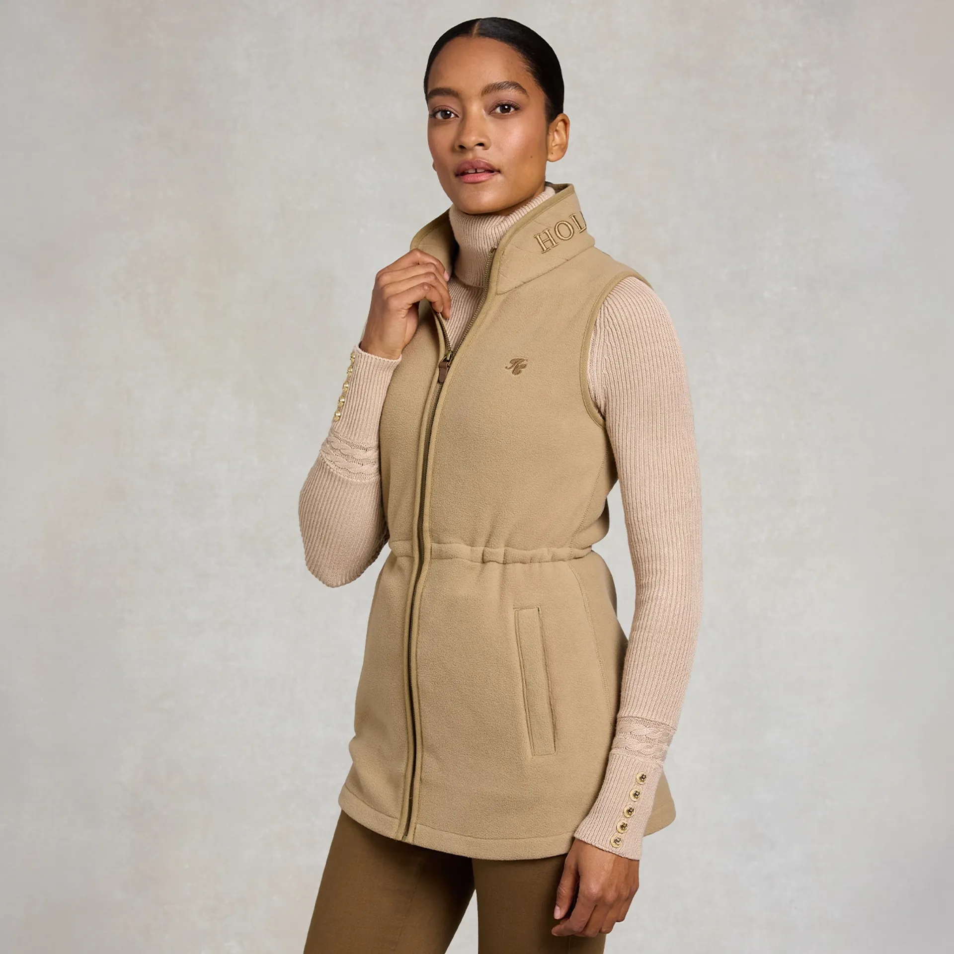 Question(s) answered about Holland Cooper Country Longline Fleece Womens Gilet - Sand