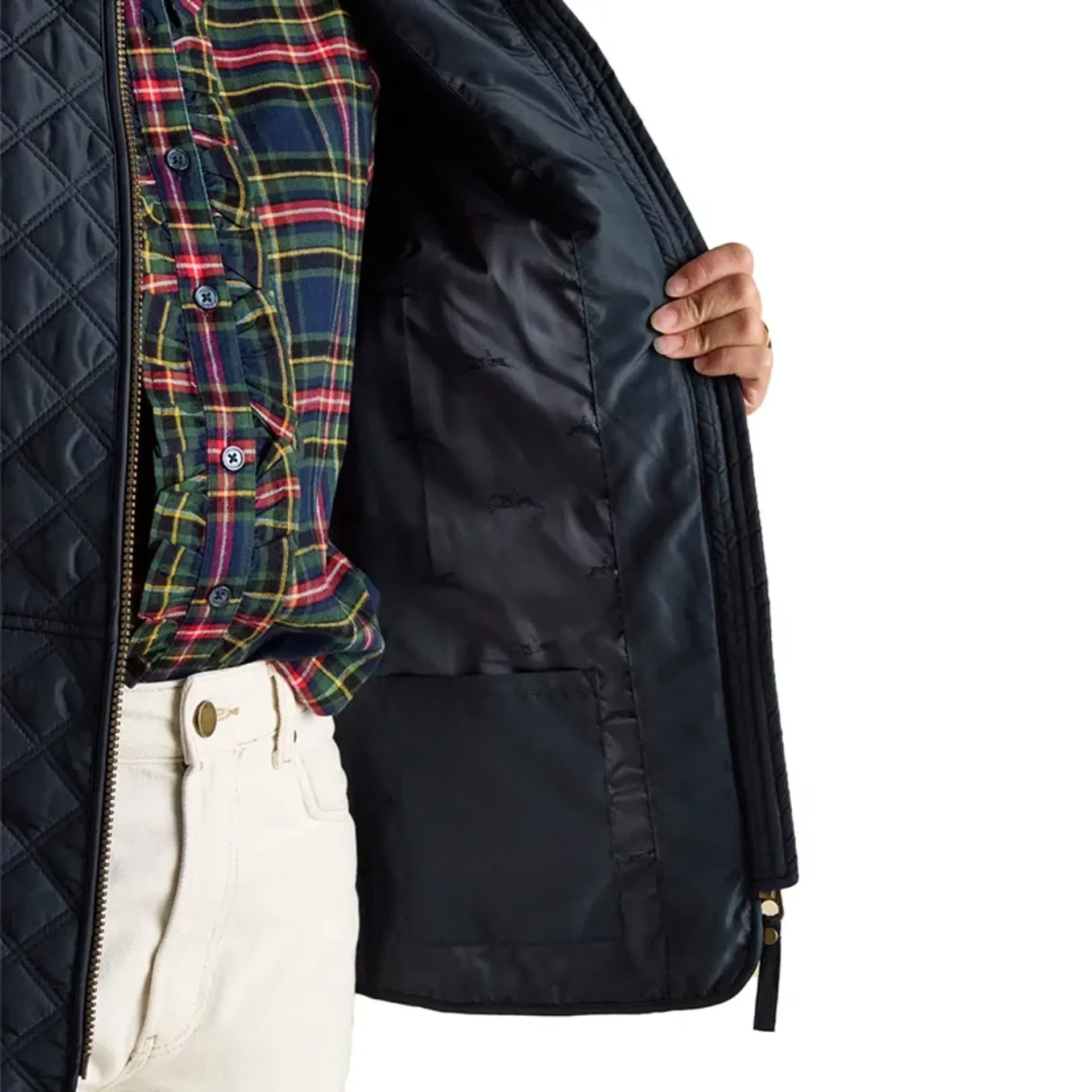 Question(s) answered about Joules Minx Womens Showerproof Diamond Quilted Gilet - Navy