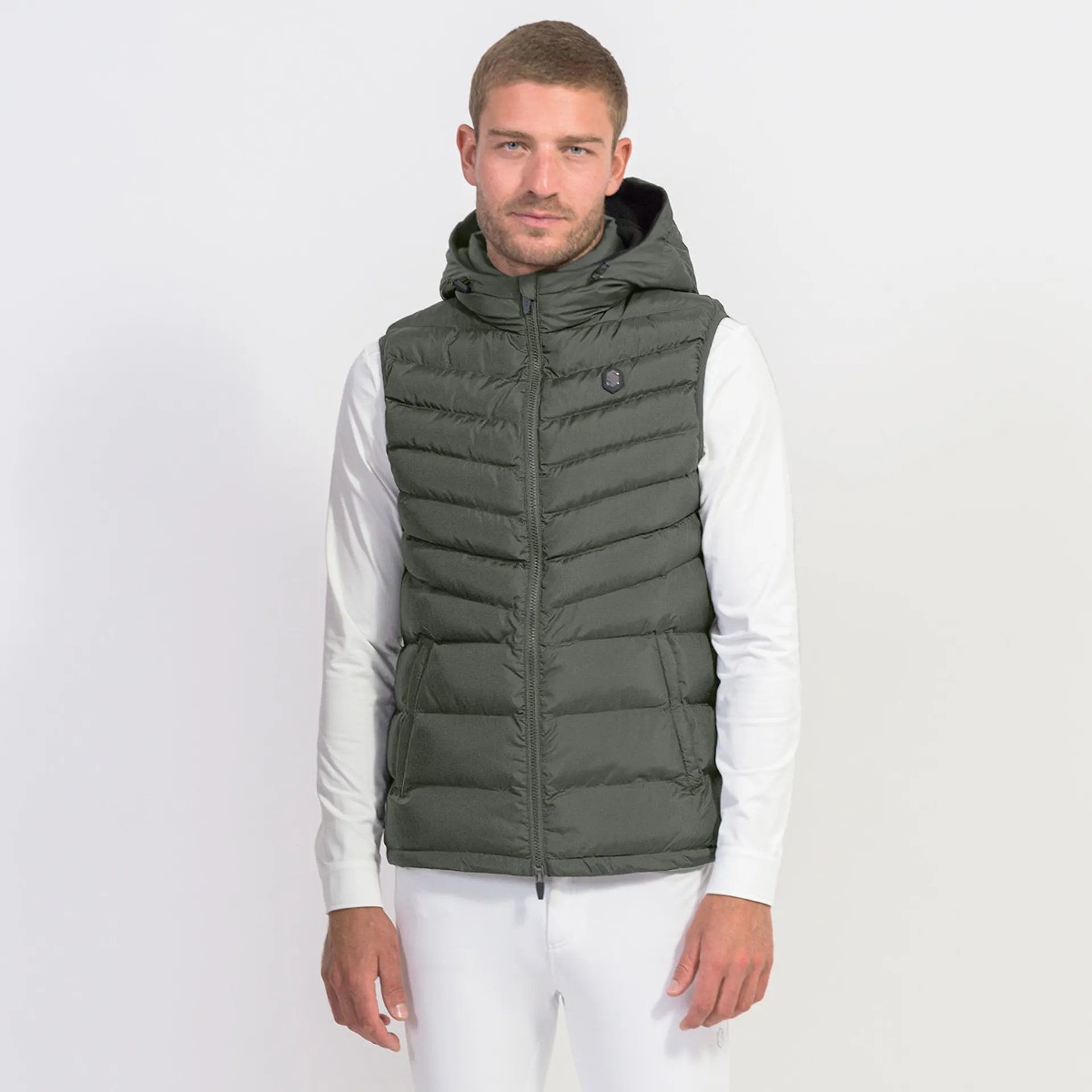 A ribbed lower hem prevents the gilet from rising up when in the saddle, and the down inner padding is incredibly lightweight whilst providing the high levels of heat retention. The removable hood offers versatility and extra coverage from the elements.