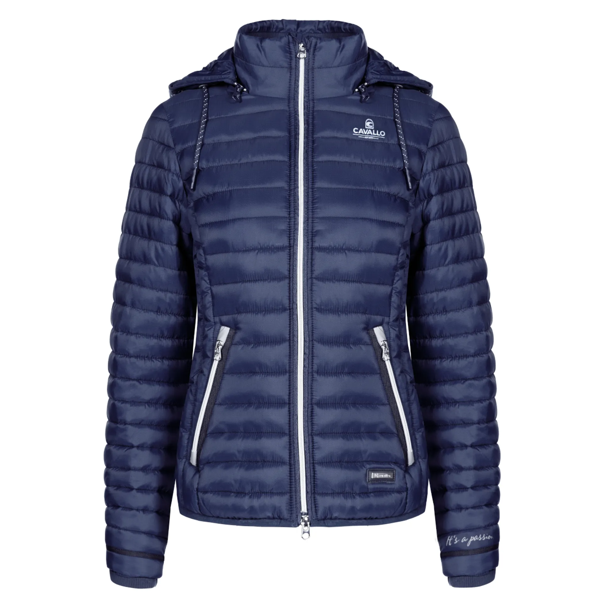 A modern, padded quilted jacket in a sporty look, the Cavallo Baga Quilted Ladies Jacket features a fake down heat-insulating filling, 2-way front zip and detachable hood. The slight waist also gives it a feminine shape.