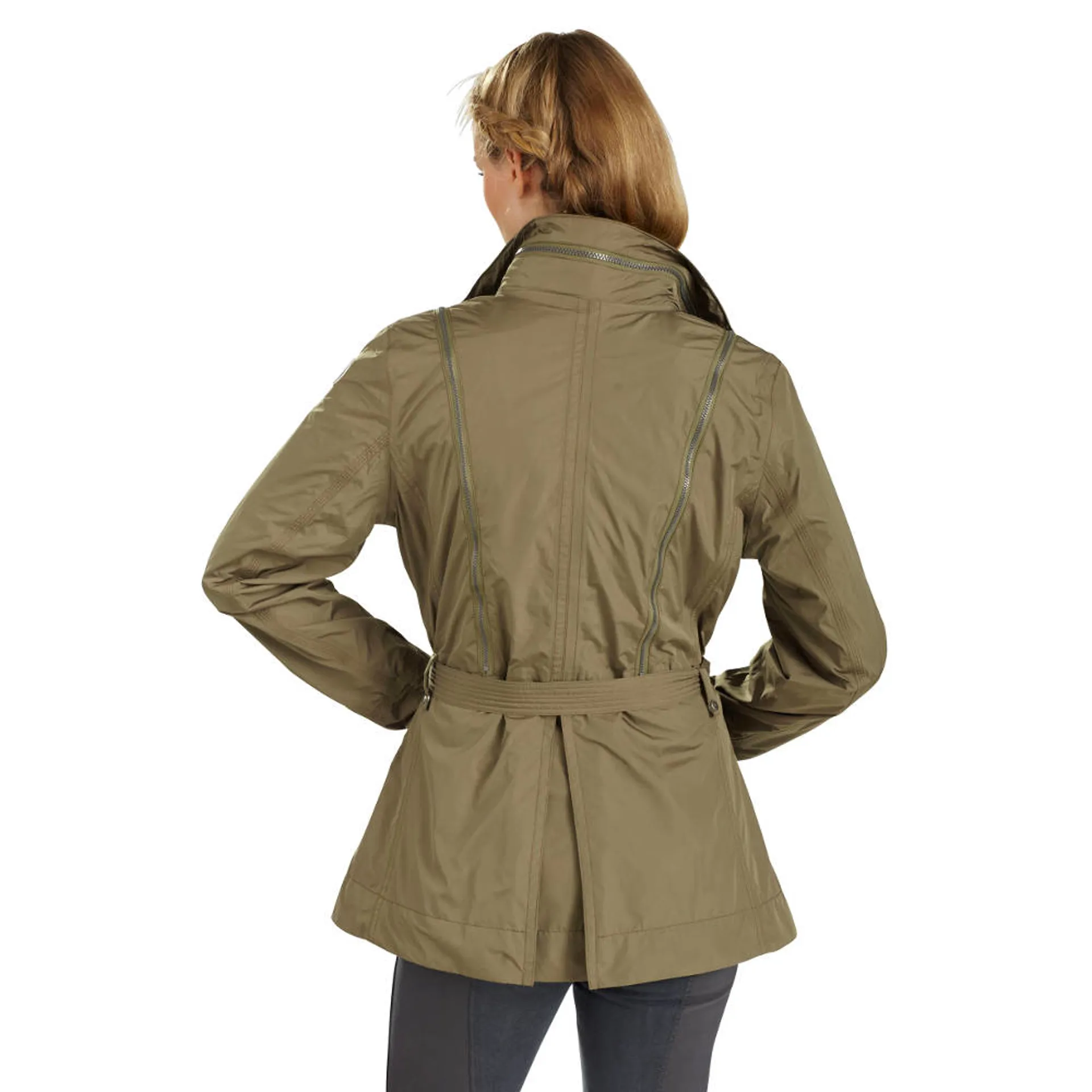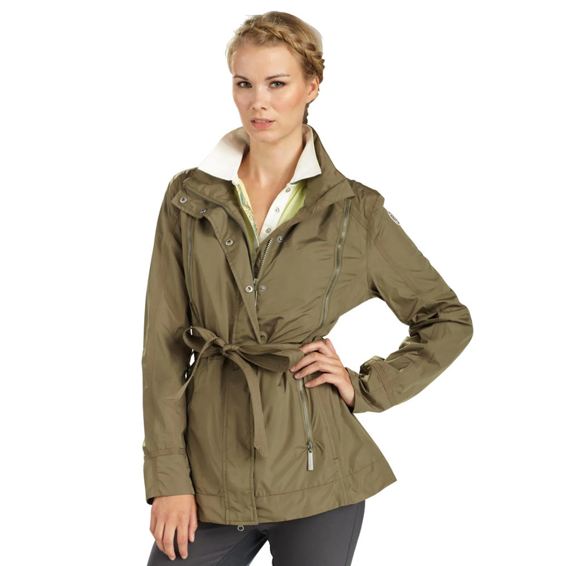 The Gersemi Brita Jacket is a piece to remember. It features 100% waterproof material with a stylish dimension to it. There is a detachable belt, a two way front zip and built in zipper storage making it a super functional coat. It has been designed as a mid-length coat for those of you who desire a longer fit, whilst not losing a flattering shape and longer silhouette. The lining is an extra comfort mesh designed for optimum comfort.  It is fully machine washable for ease of care, is lightweight and has a zip away hood.