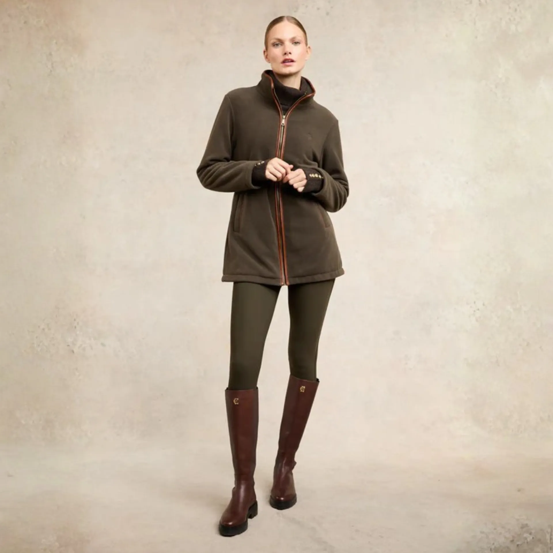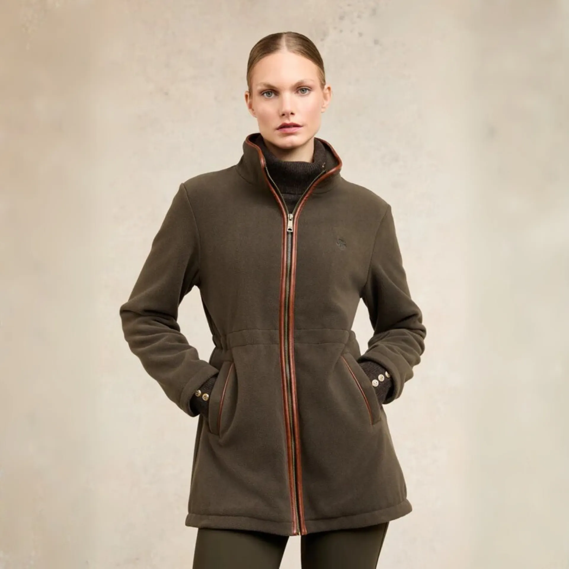 Holland Cooper Longline Country Fleece Womens Jacket - Khaki