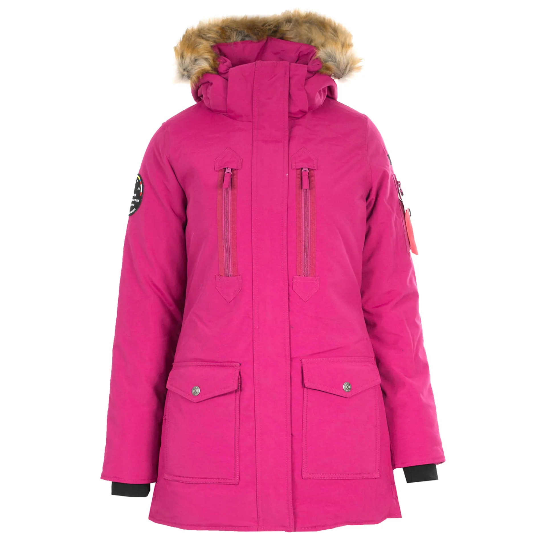 • Detachable hood with removable faux-fur.