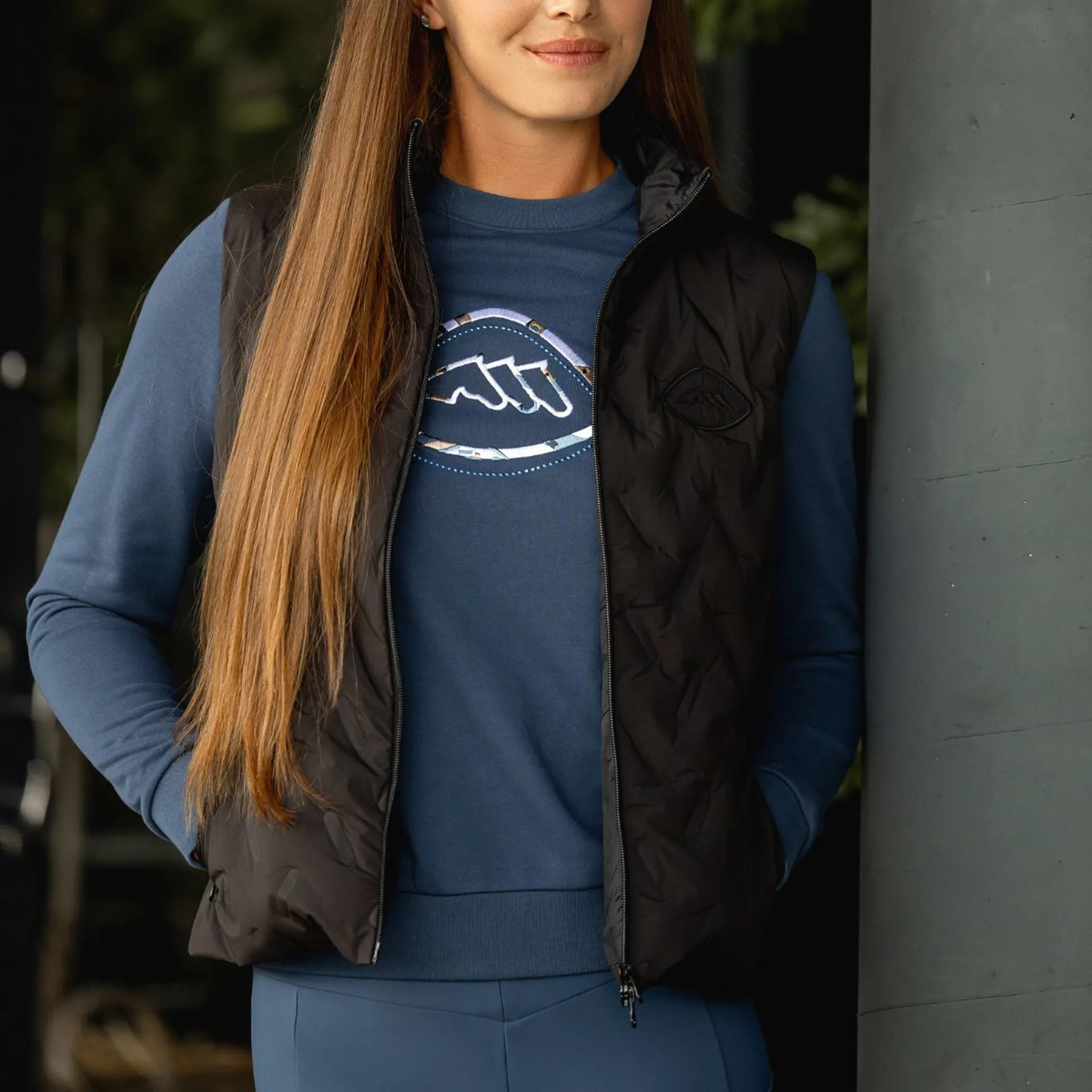 • Embroidered Equiline logo on the chest with microstud detailing
