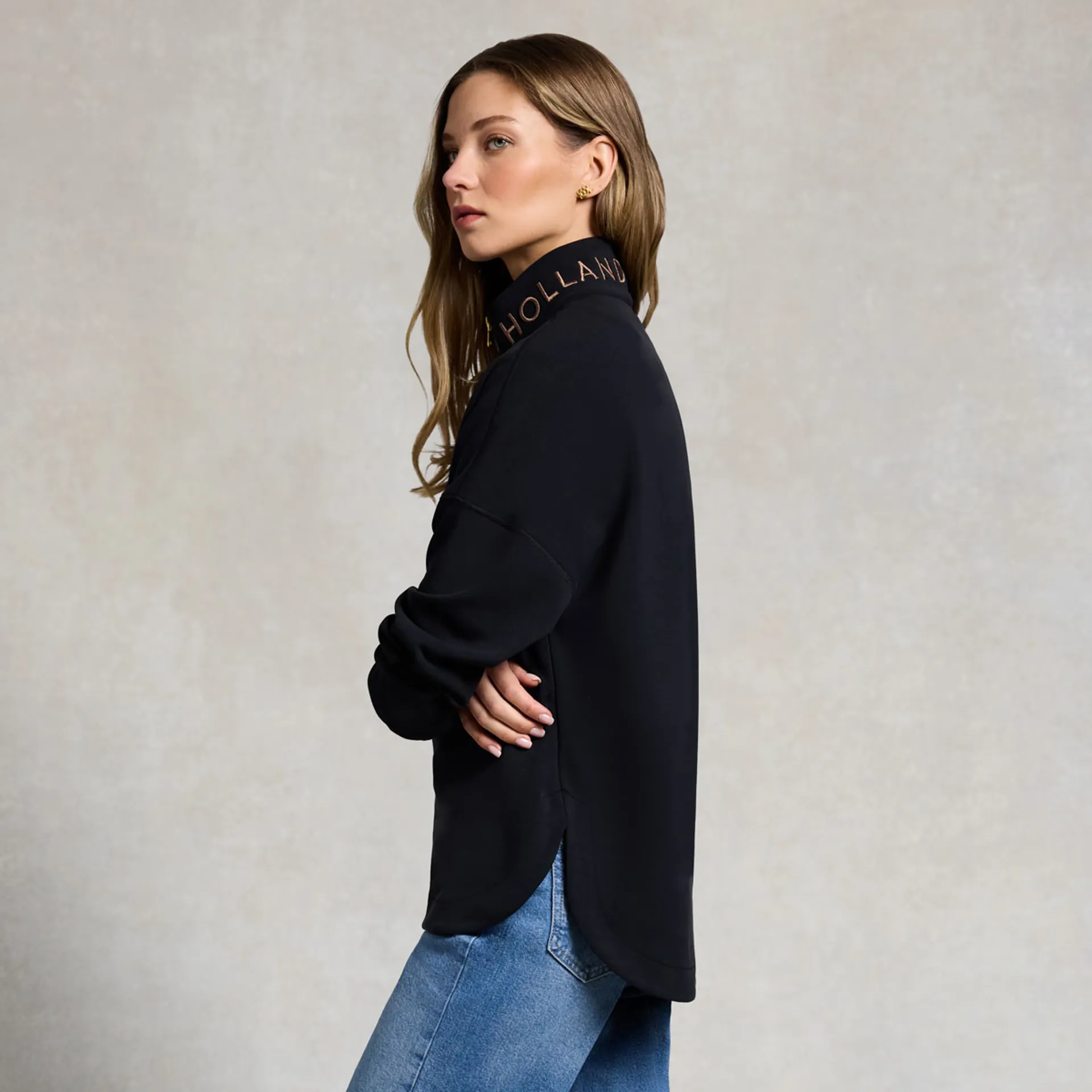 Question(s) answered about Holland Cooper Windsor Womens Quarter Zip Sweatshirt - Black