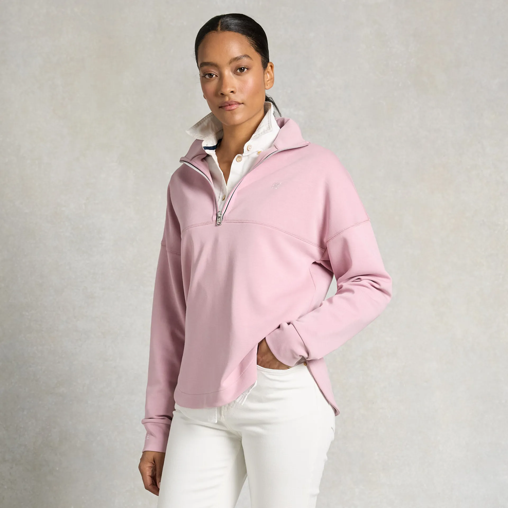Question(s) answered about Holland Cooper Windsor Womens Quarter Zip Sweatshirt - Dawn Pink