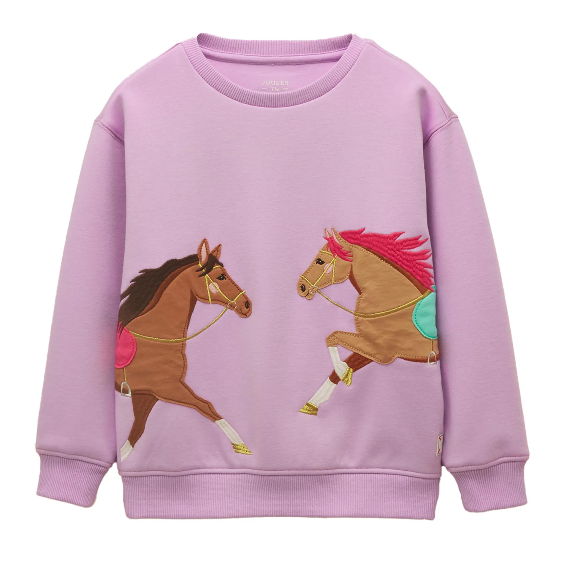 Question(s) answered about Joules Mackenzie Junior Girls Sweatshirt - Lilac Horse