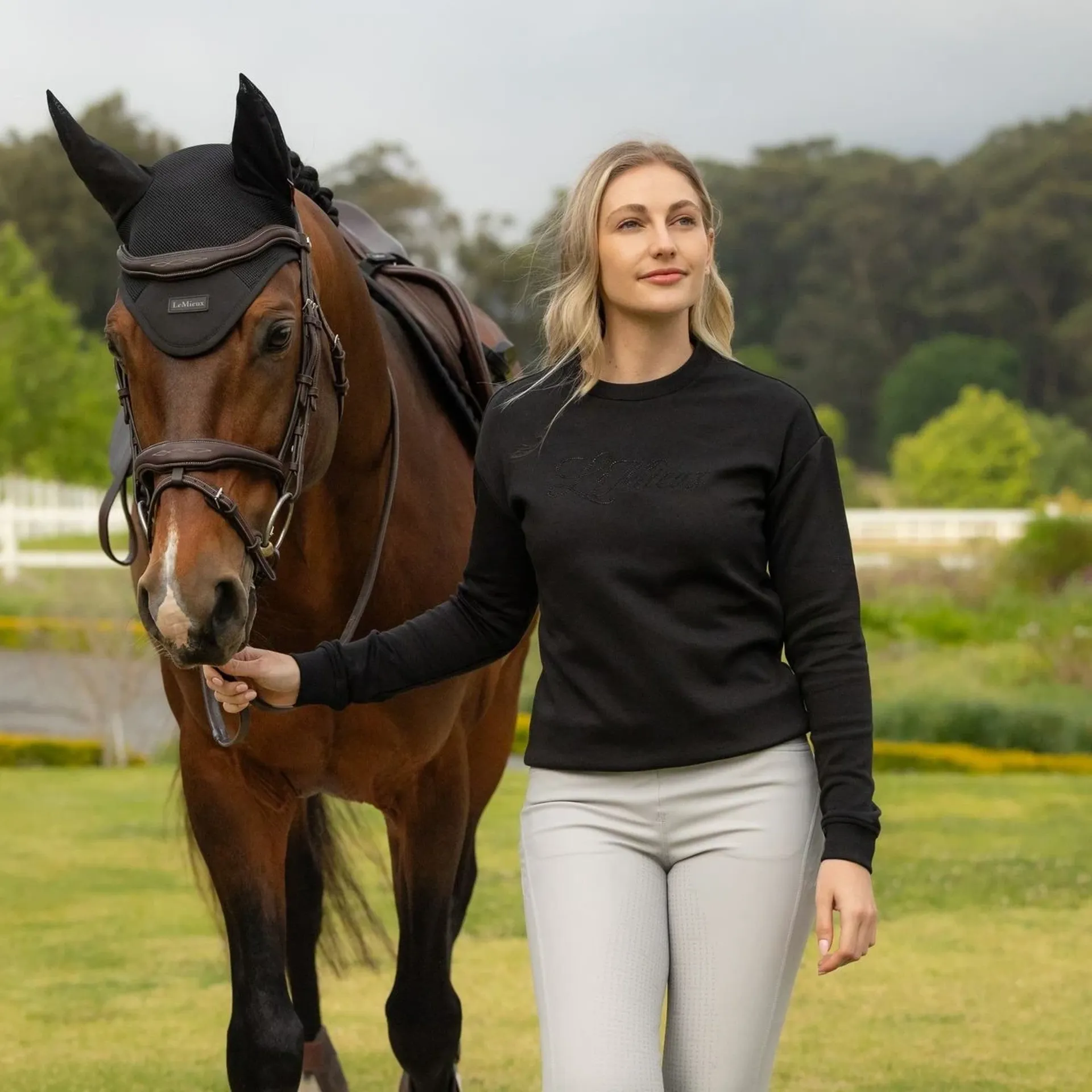 Question(s) answered about LeMieux Christina Womens Crew Neck Sweatshirt - Black