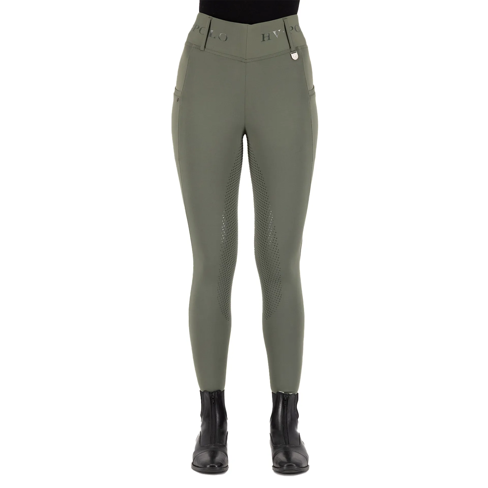 HV Polo Favourite Summer Full Grip Riding Tights feature a high waist with elastic fit and belt loops. Dual phone pockets with a rivet and a silicon full grip combine style and function for summer riding.
