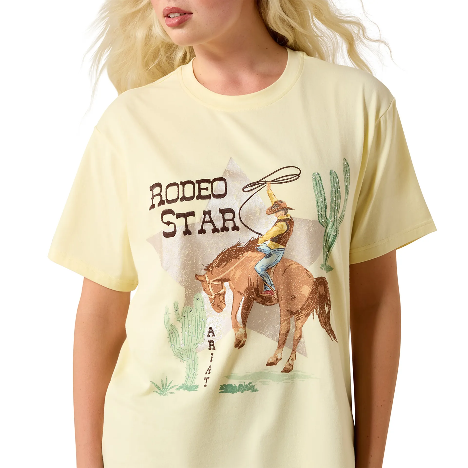 Question(s) asked regarding Ariat Rodeo Star Womens Boyfriend T-Shirt - Pearl Sorbet