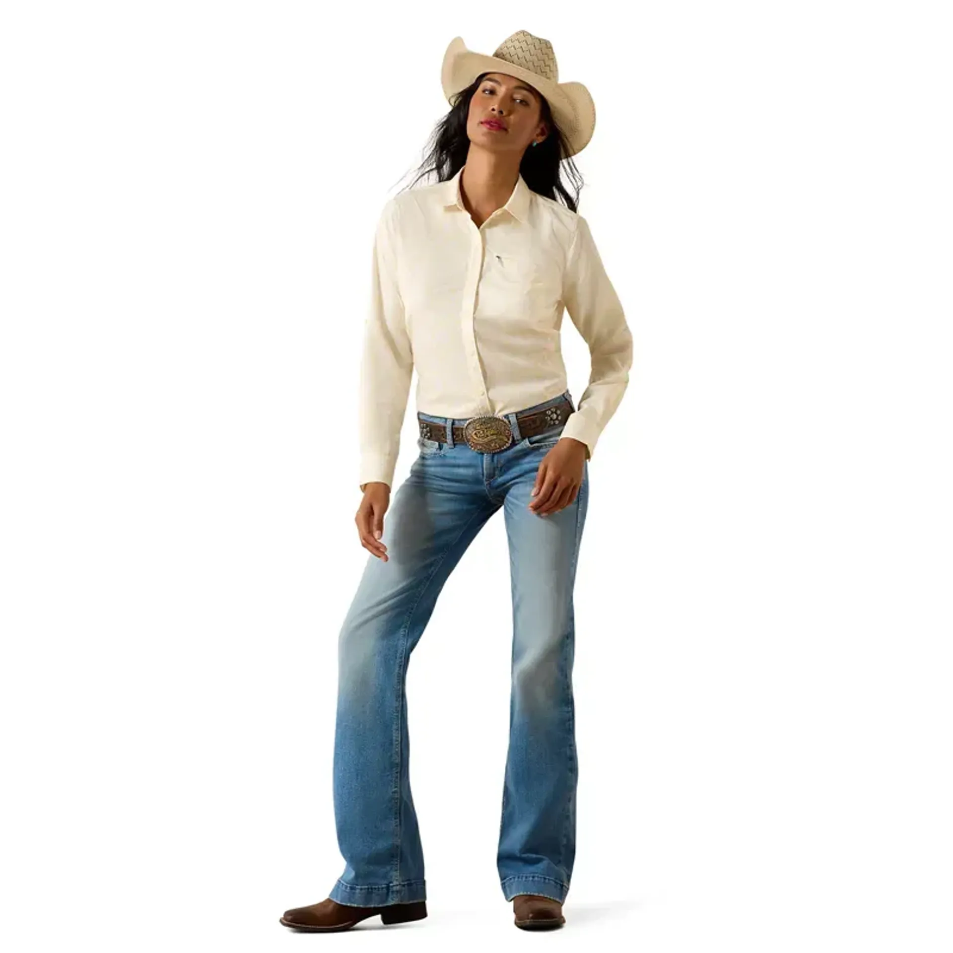 The Ariat VentTEK Stretch Ladies Long Sleeve Shirt is engineered with modern technology to optimise air circulation, wick away moisture, and provide comfortable movement, making it a perfect addition to your casual or formal wardrobe. This highly functional shirt includes UPF-rated sun protection fabric to keep you shielded from UV rays.