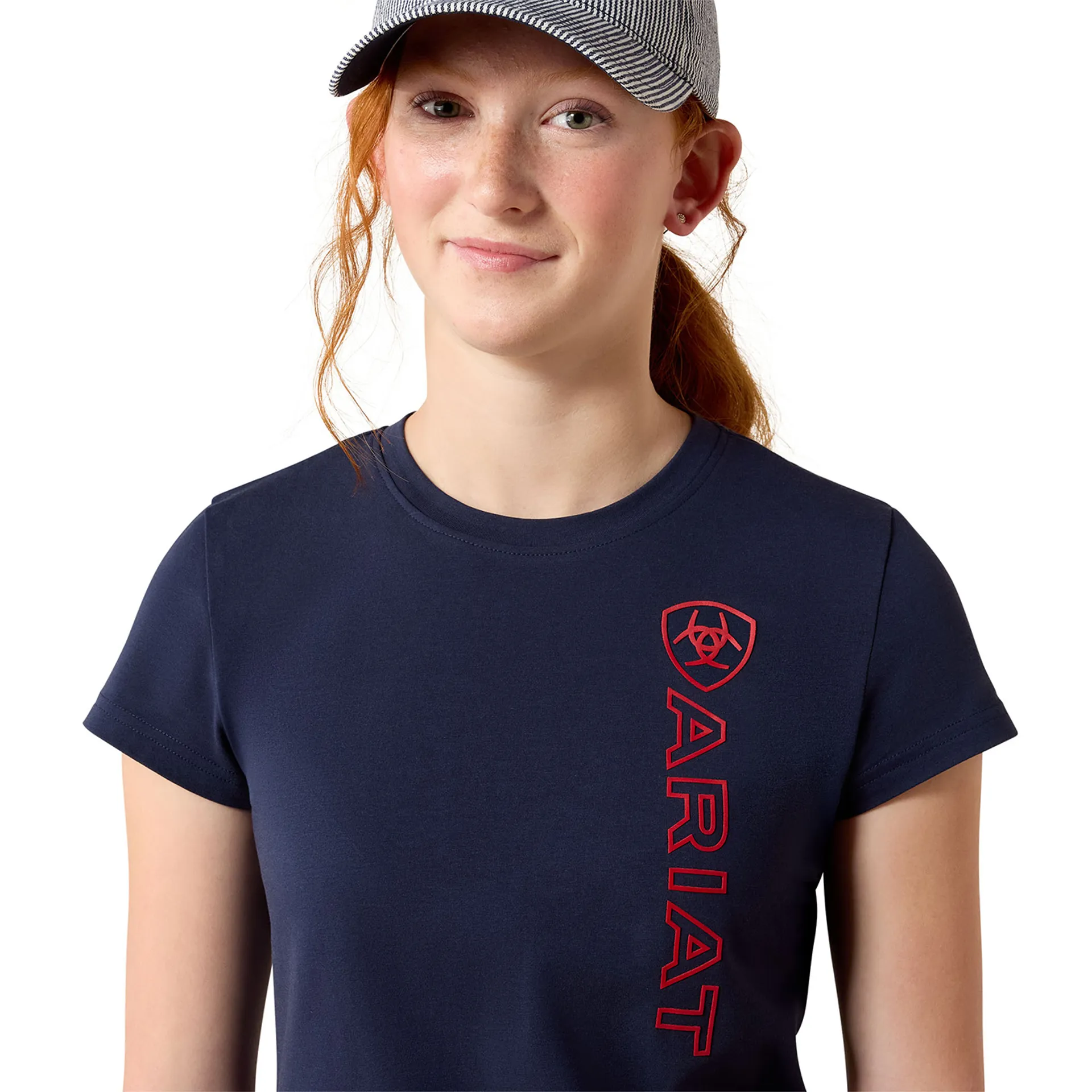 Question(s) answered about Ariat Vertical Logo Youth Tee - Navy Team/Red