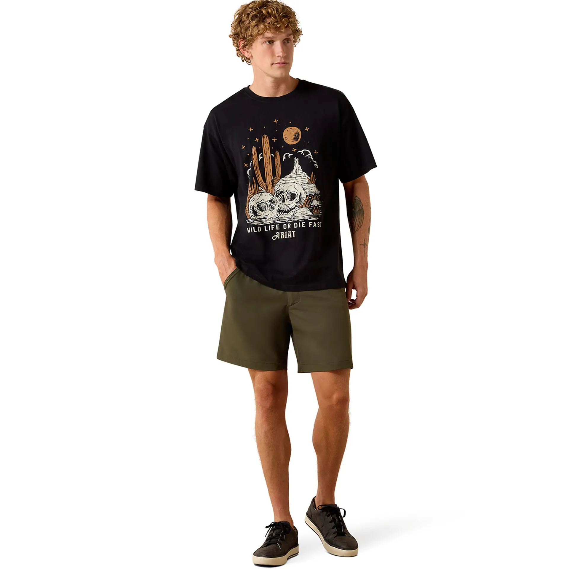 Designed for everyday comfort and style, the Ariat Wild Life Boxy Mens T-Shirt features a relaxed boxy fit and a unique screenprint graphic with a Western theme.