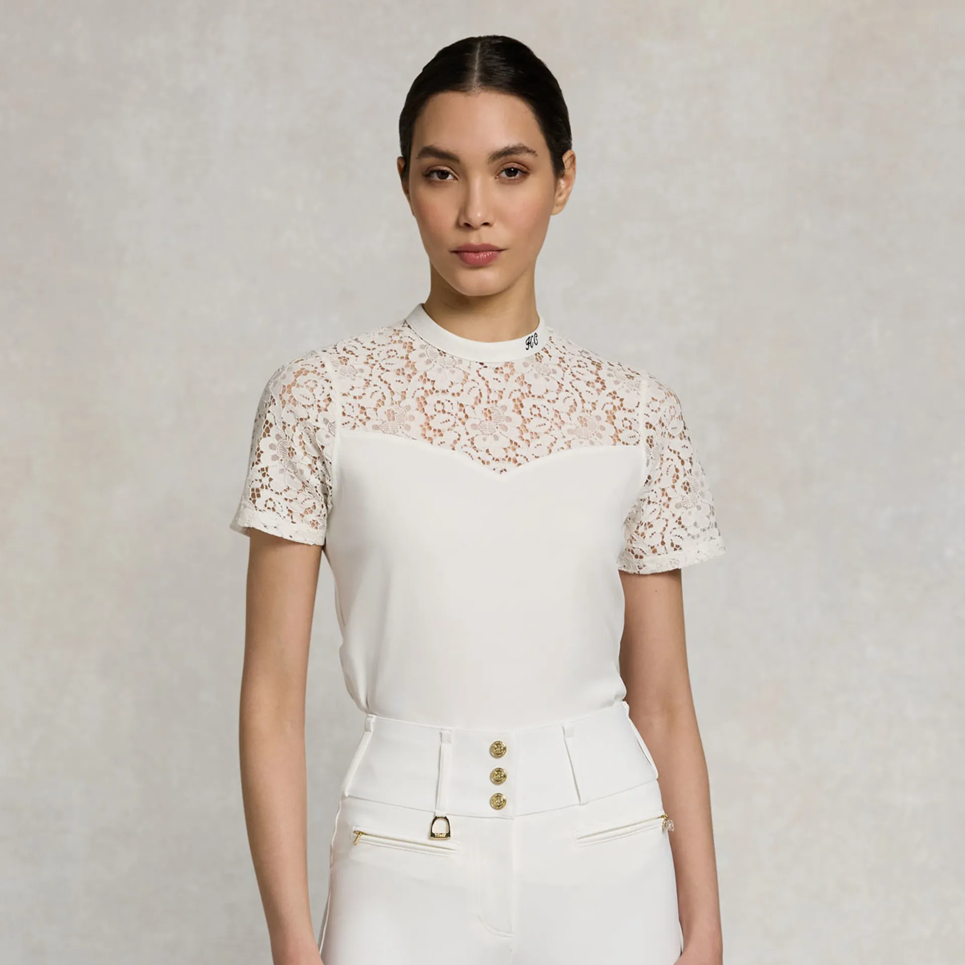 The Holland Cooper Womens Lace T-Shirt is a beautifully refined wardrobe essential, designed to bring effortless elegance to your everyday and equestrian-inspired style. Blending soft comfort with delicate detailing, this sophisticated tee features intricate lace panelling and a subtle sweetheart neckline to create a flattering, feminine silhouette. Crafted from a stretch-infused fabric, this T-shirt delivers all-day comfort while maintaining its shape and polished appearance.