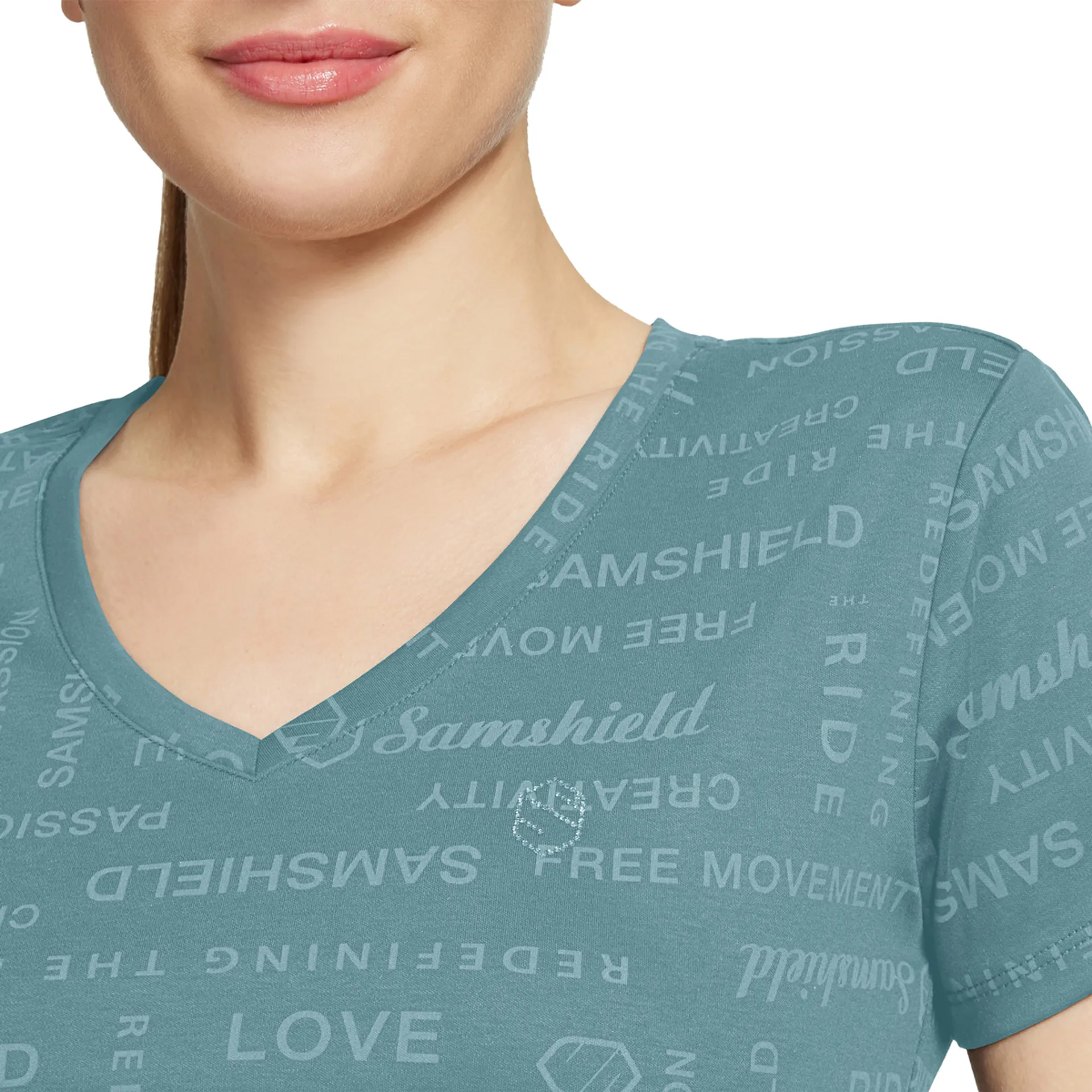 Lightweight and durable with tone-on-tone print detailing, the Samshield Auxane Ladies T-Shirt features a Samshield Swarovski Crystal blazon at the chest and Swarovski Crystal Fabric tab at the side. Made from breathable cotton for maximum comfort.