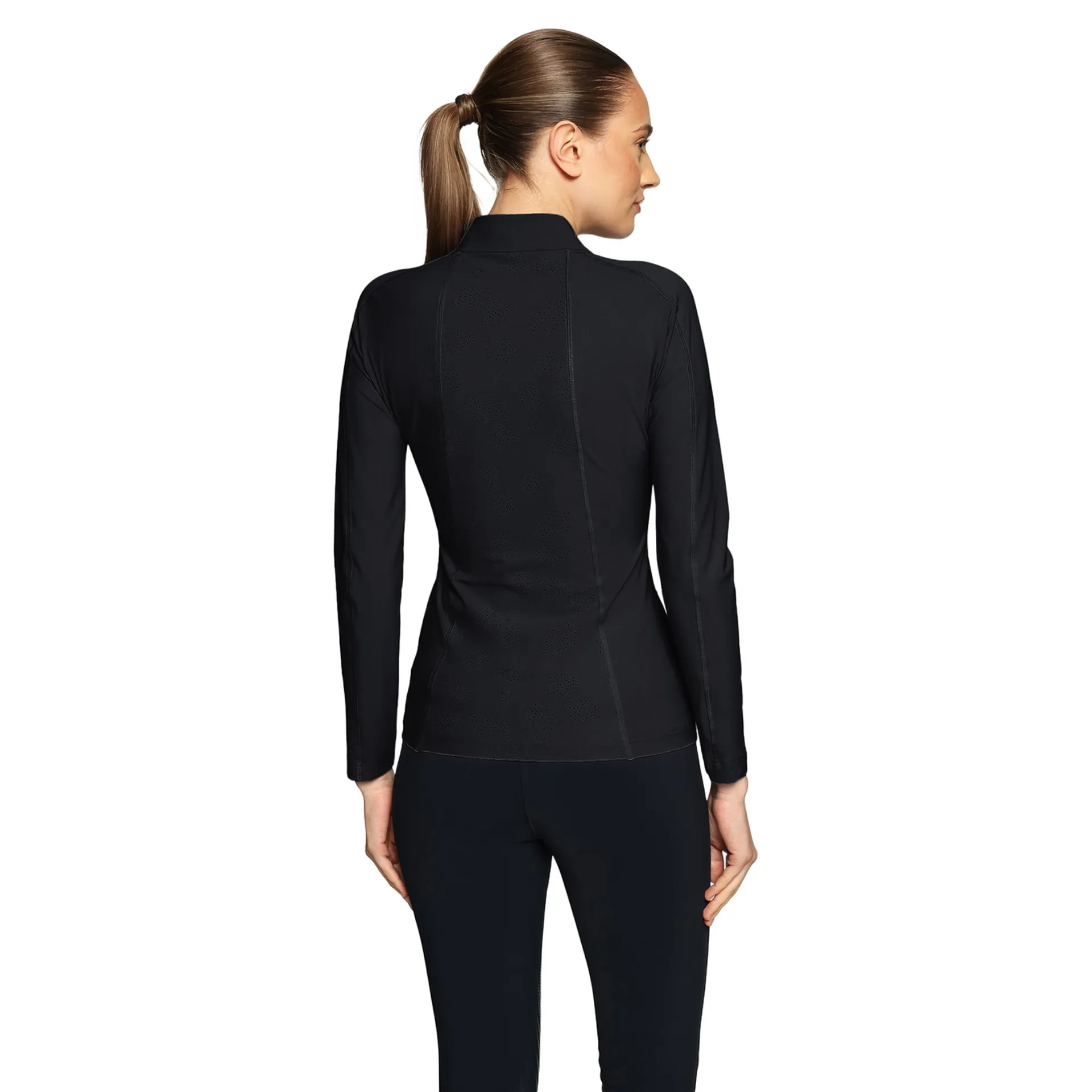 The Samshield Evelya Womens Long Sleeve Training Top is designed for elegant simplicity and controlled comfort both on horseback and in the stable. Its slim fit flatters the figure while the soft, lightweight fabric provides a pleasant feeling all day long. Discreet Leaf perforations on the torso and back add a graphic touch and natural ventilation for a modern, refined look.