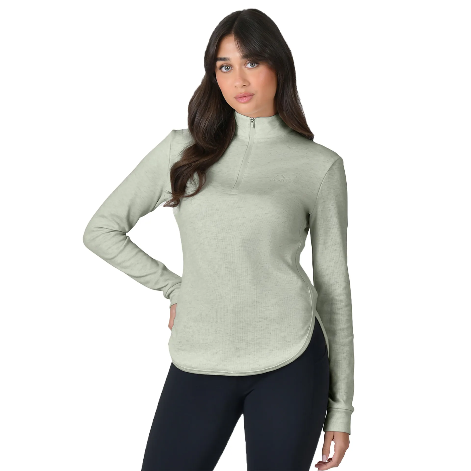 Crafted from a soft brushed poly-viscose-elastane blend, the WeatherBeeta London Women’s Layer Long Sleeve Top is warm, flexible, and flattering, with a chic curved hem and zip neck—perfect for layering or wearing alone.