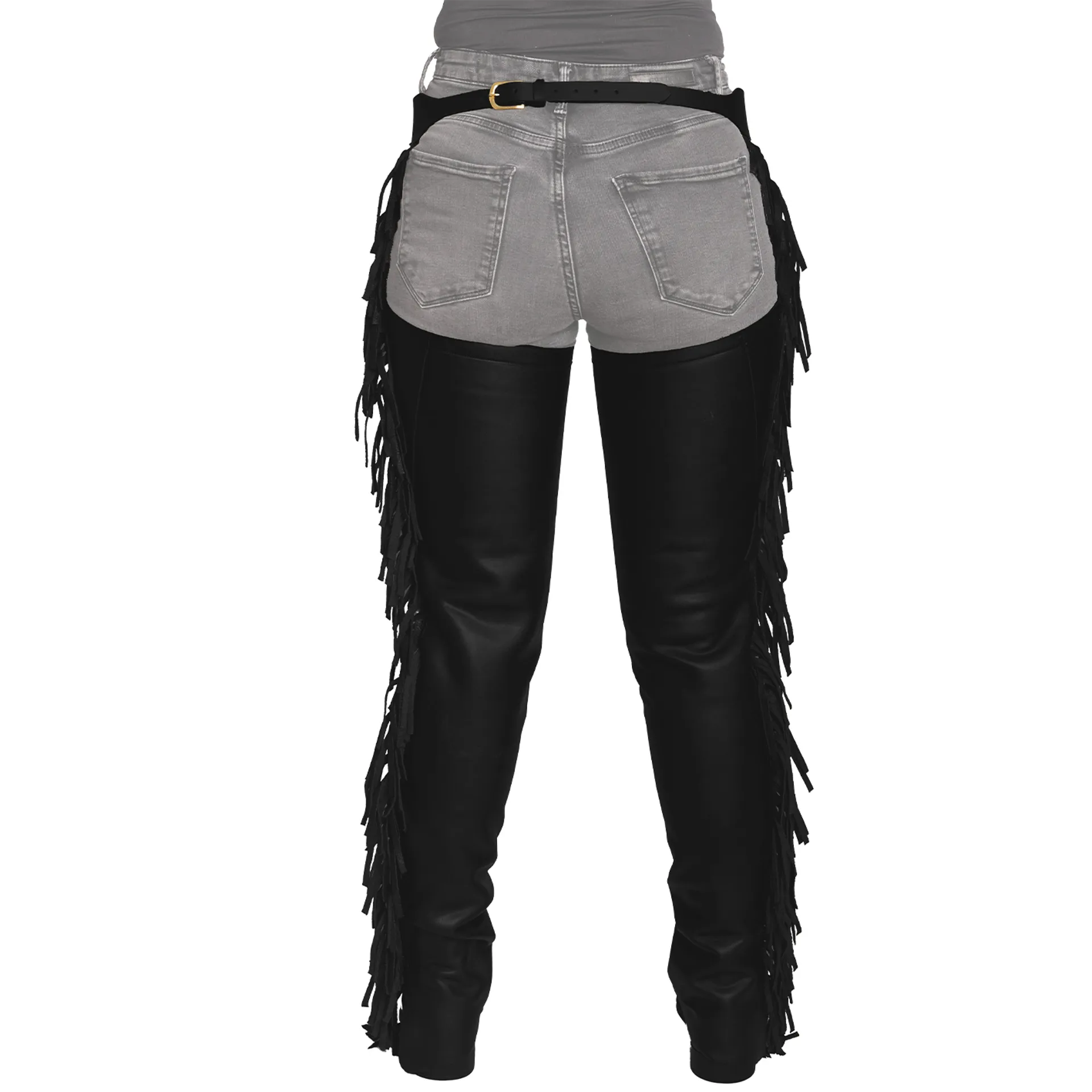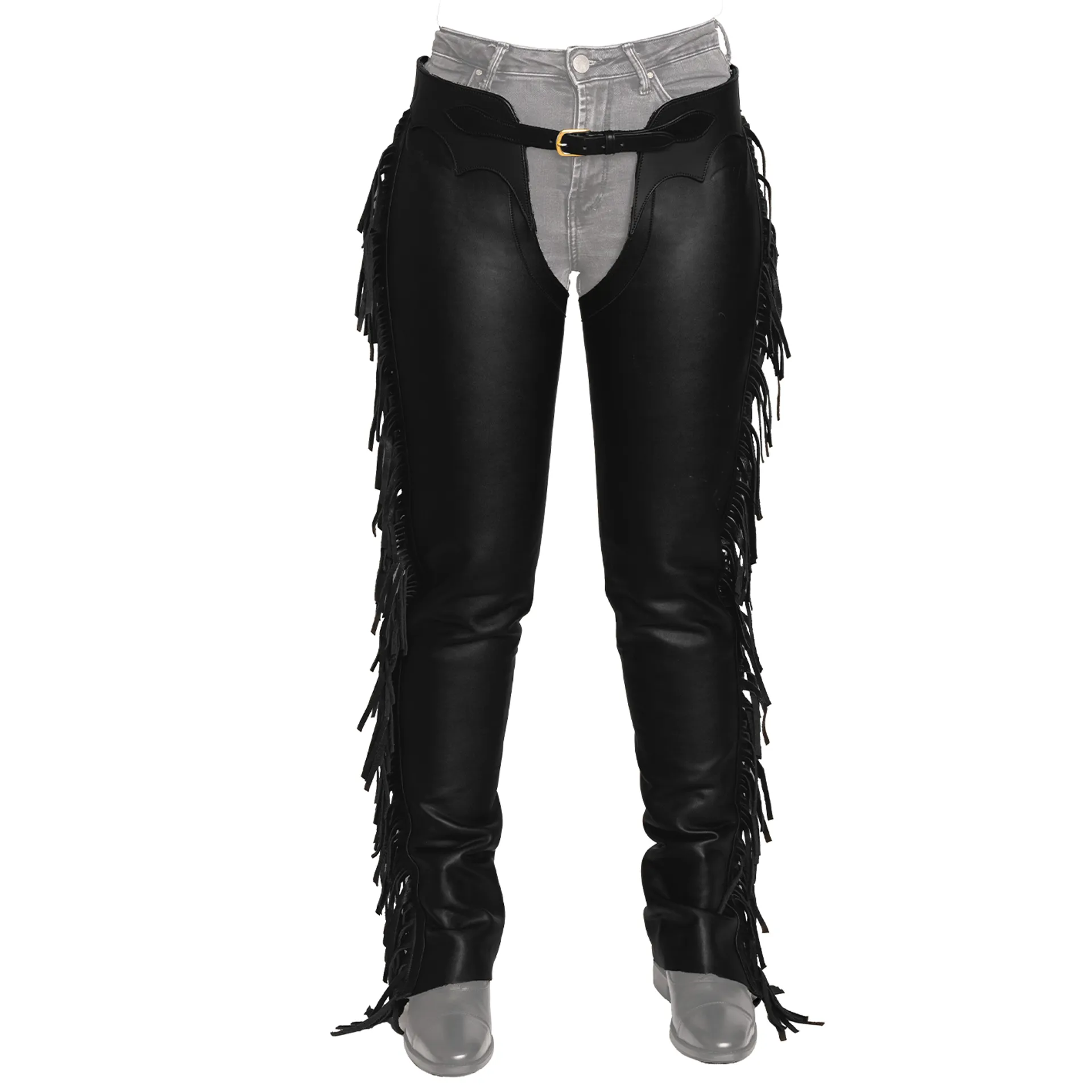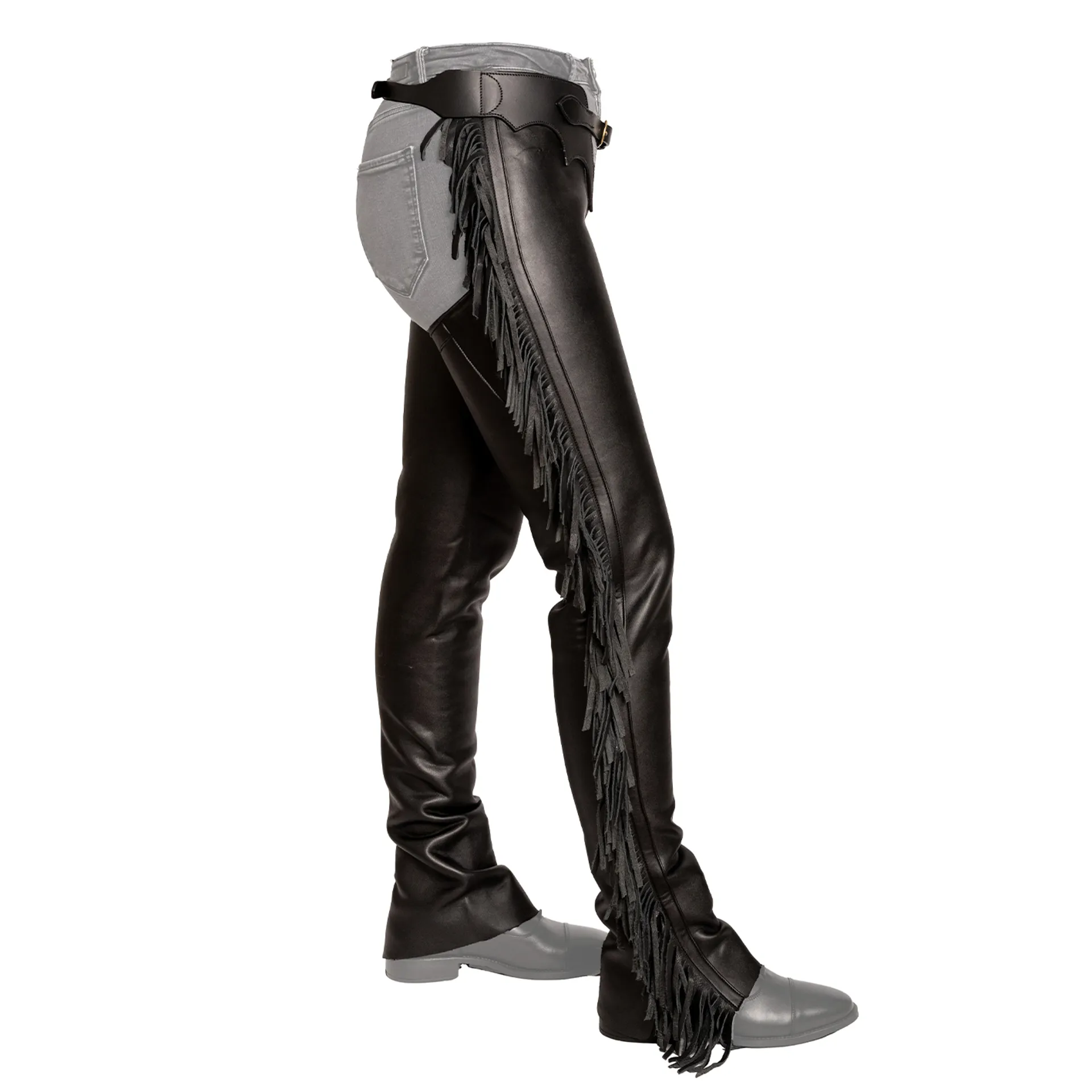 Question(s) answered about Dy'On Vegan Leather Long Chaps with Fringes - Black