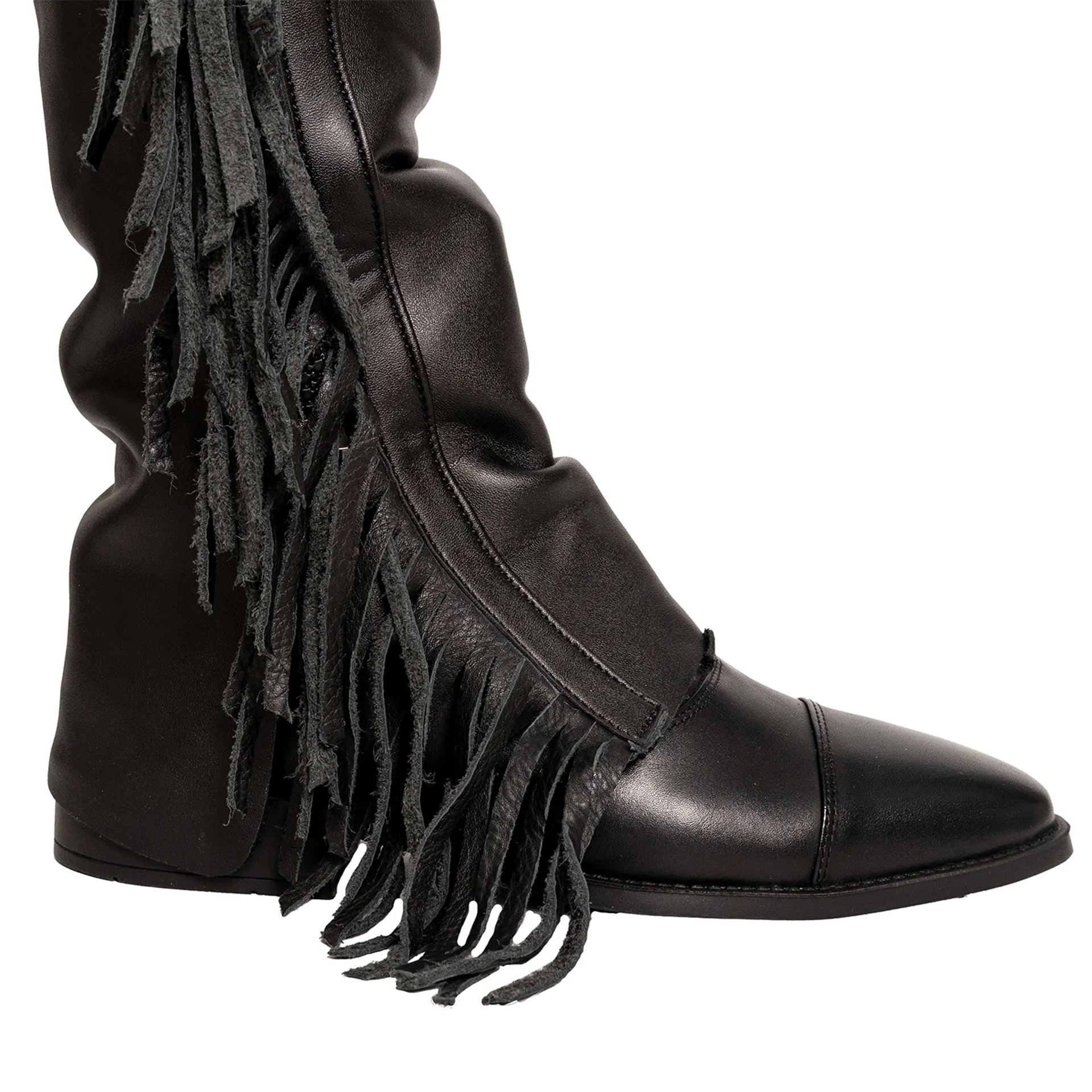 Dy'On Vegan Leather Long Chaps with Fringes - Black