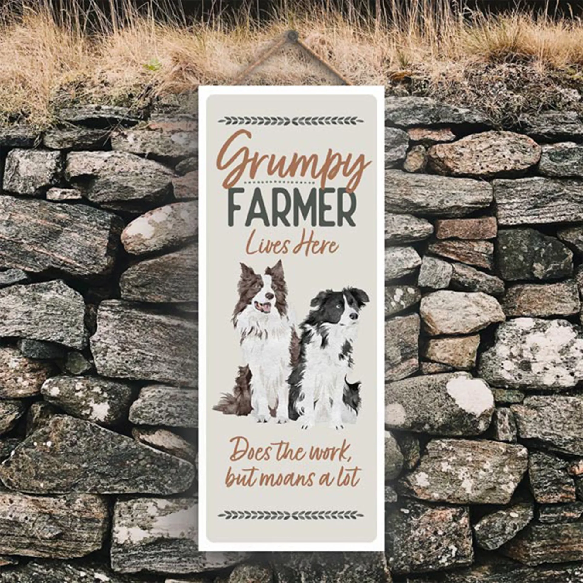 Question(s) answered about Vivid Squid Long Hanging Rectangle Plaque - Grumpy Farmer Lives Here