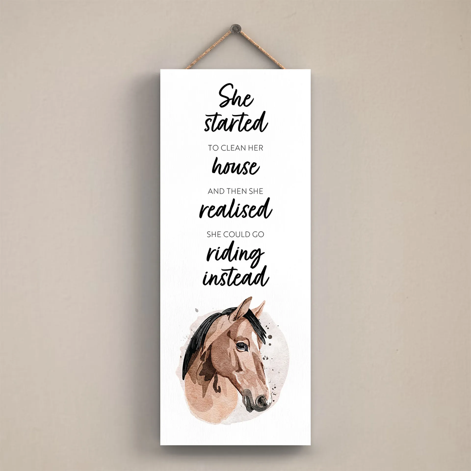The Vivid Squid Rectangle Plaque will bring a dash of humour and personality to your stable, yard, or equestrian home. Made from sturdy wood and designed to hang with ease, this rectangular plaque features witty equestrian quotes and charming artwork that every horse lover can relate to. Whether you're looking to brighten up your tack room or add character to your home décor, these plaques are a perfect fit. With a wide variety of designs to choose from, there's a style to suit every rider's taste.