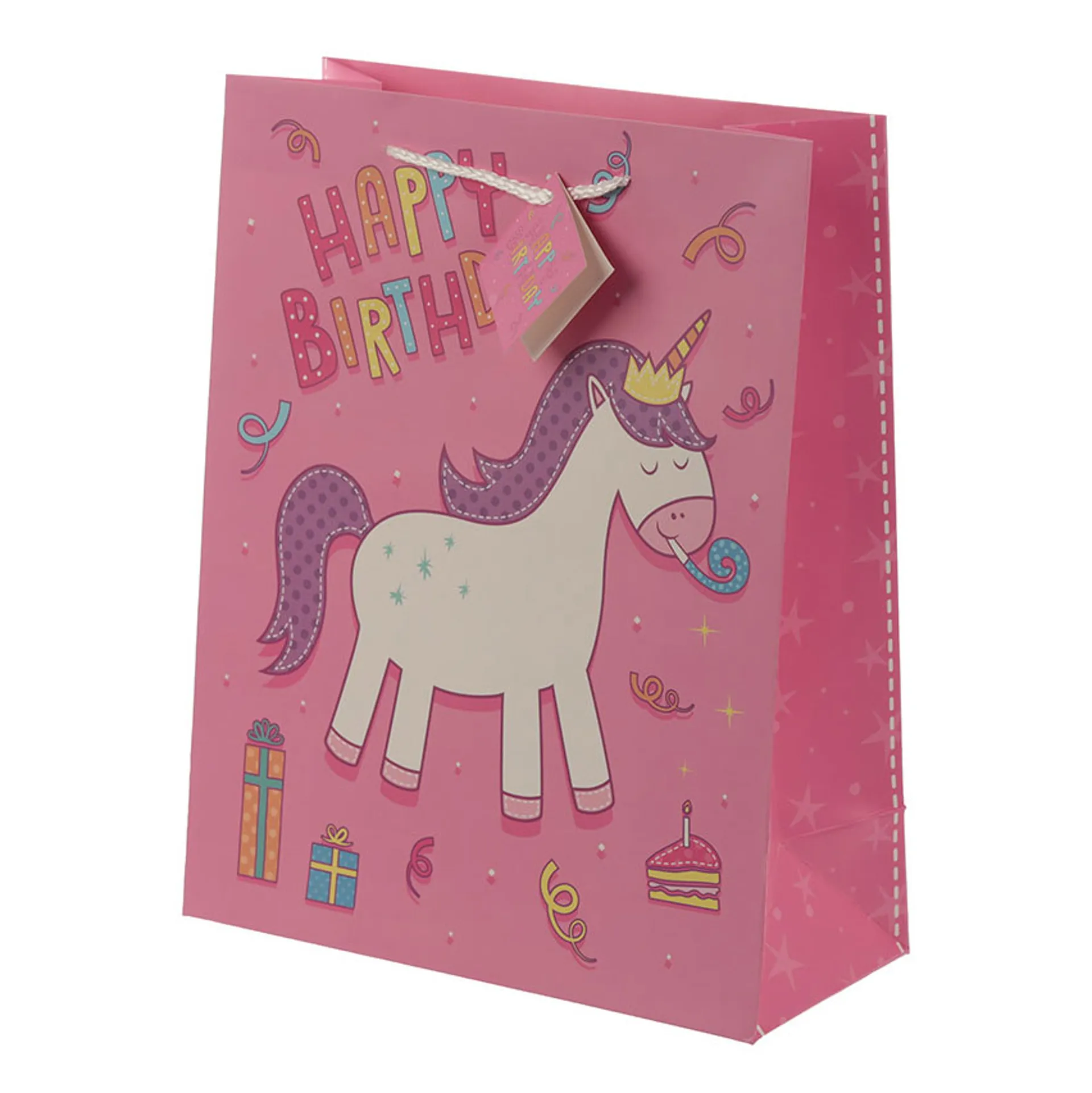Question(s) asked regarding Spartan Enchanted Rainbows Unicorn Birthday Gift Bag - Pink/Large
