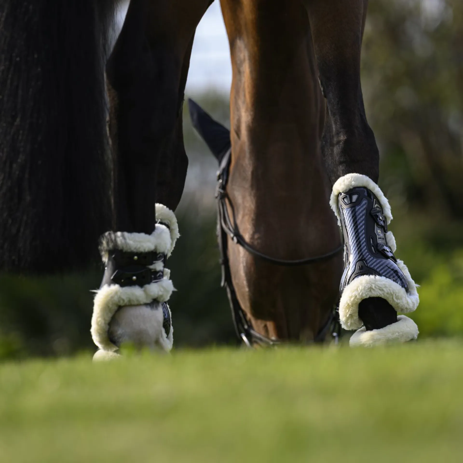The Veredus Carbon Gel Absolute Save The Sheep Tendon Boots are designed for performance and engineered with ethical innovation. These boots combine advanced carbon and Nitrexgel impact protection with Veredus' iconic cruelty-free Techno Sheepskin lining. The inverted Y-shaped carbon shell and 3mm Nitrexgel membrane extend coverage across the tendon for superior safety, while double ventilation and 3D mesh fabric ensure airflow and breathability. For riders who demand excellence without compromise — in comfort, function, and style.