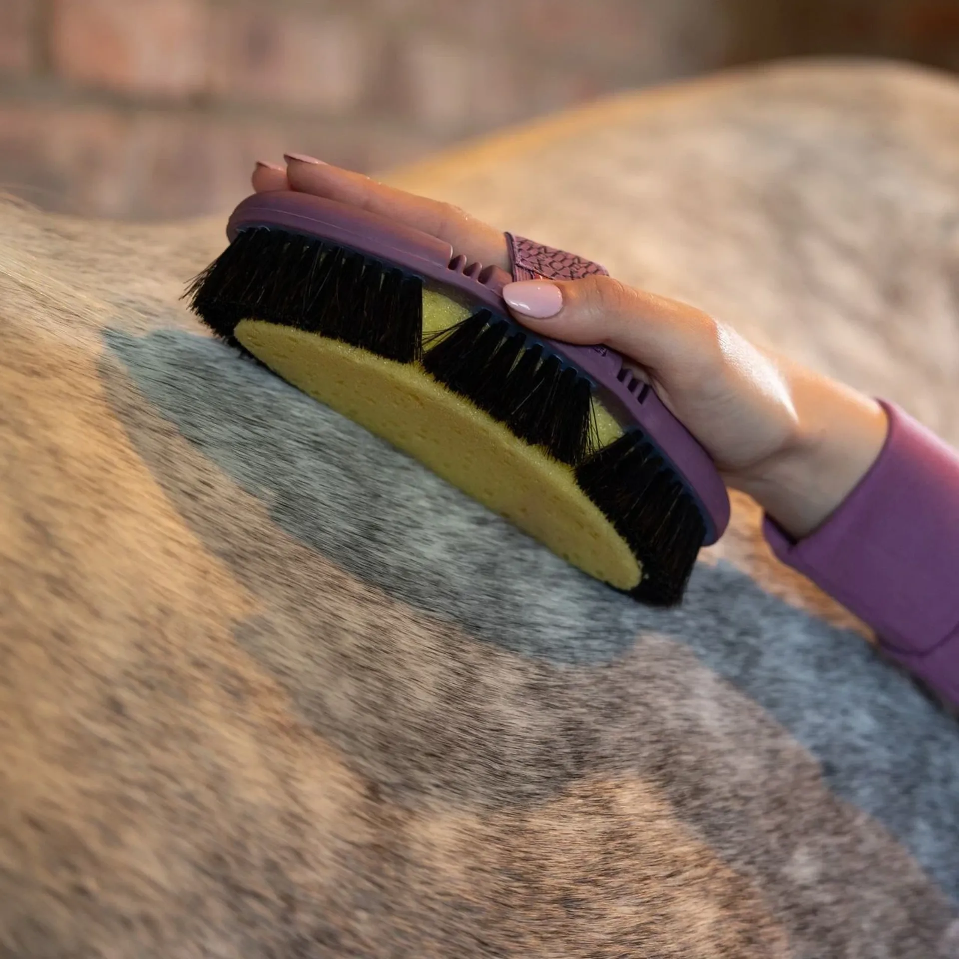The LeMieux Flexi Sponge Brush is perfect for bath time. Achieve a sparkling clean with this two-in-one flexi sponge brush, ideal for a quick rub around sweaty girth areas, washing out sweat and dirt, and removing stable stains.