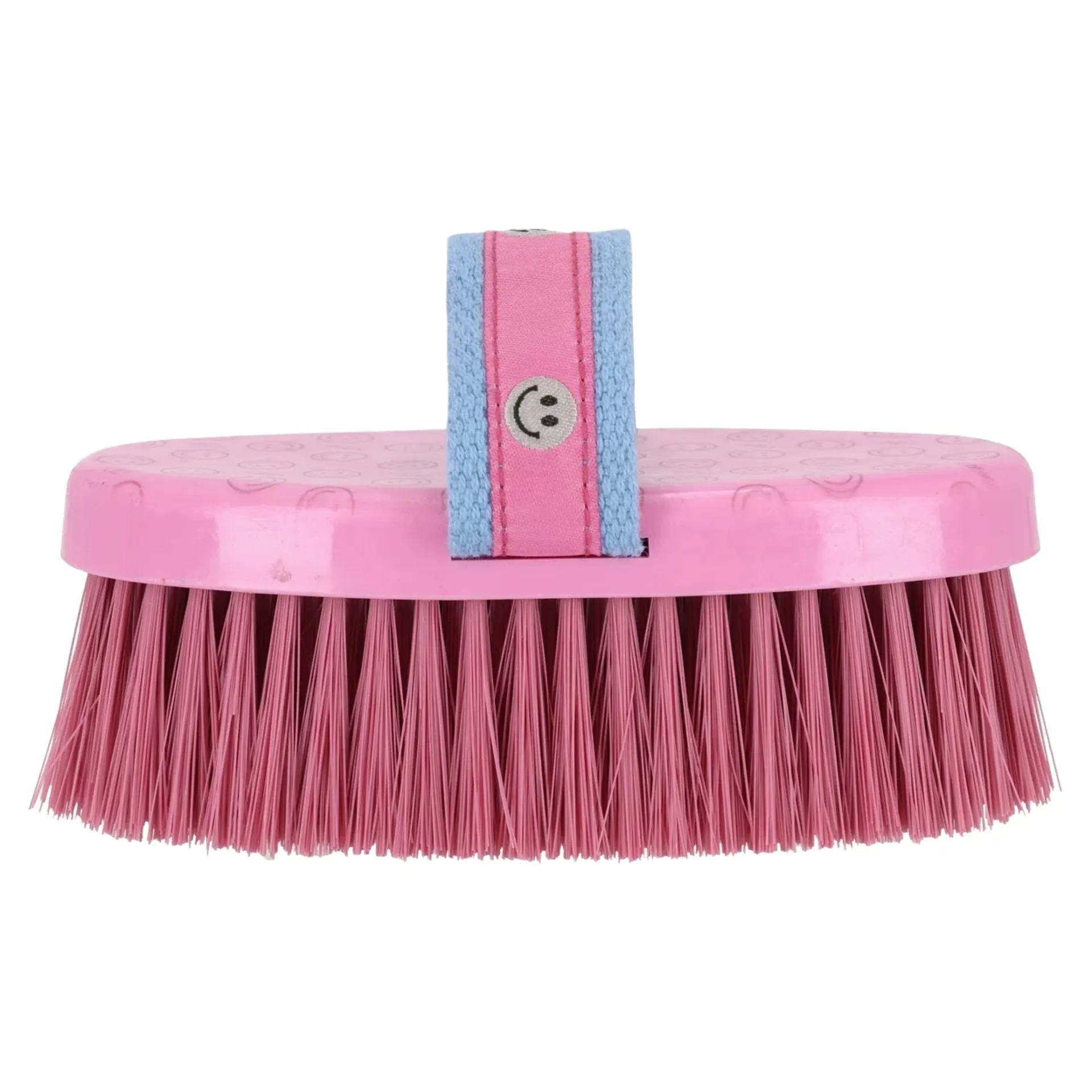 Designed for effective grooming, this tool is suitable for removing loose dirt. The QHP Rosalynn Body Brush features a nylon strap with a smiley print, ensuring a secure grip during use.