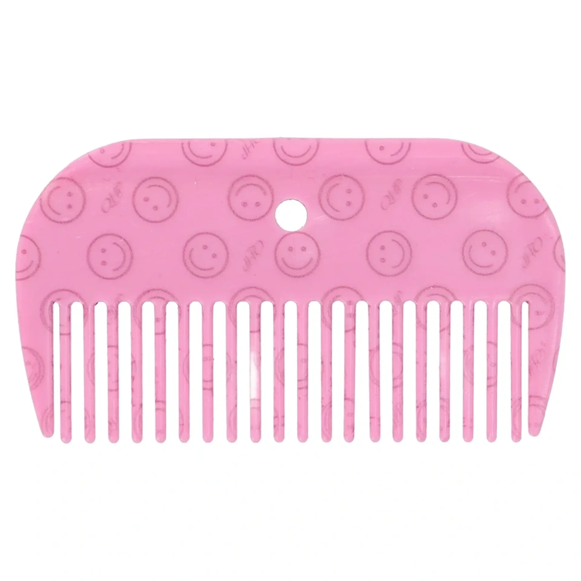 The QHP Rosalynn Mane Comb is designed for effective grooming, suitable for easily combing through the mane. This comb features a cheerful all-over smiley print and is part of the Rosalynn collection.