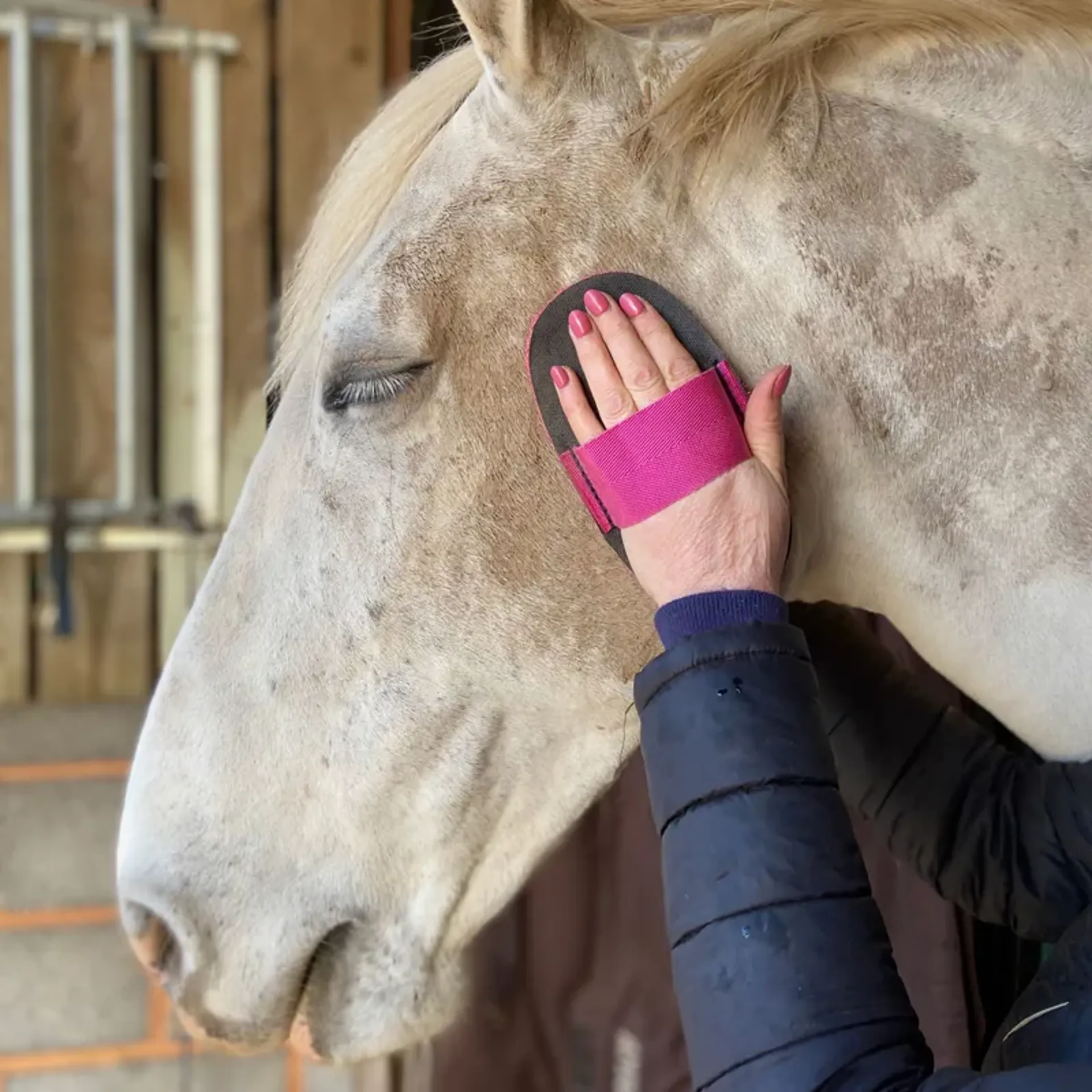 It is also ideal for using on sensitive horses, and is particularly good to use around the head and eyes where mud can get stuck on and brush bristles are not always appreciated! Being made of flexible recycled polypropylene, it contours to the shape of legs and awkward areas.