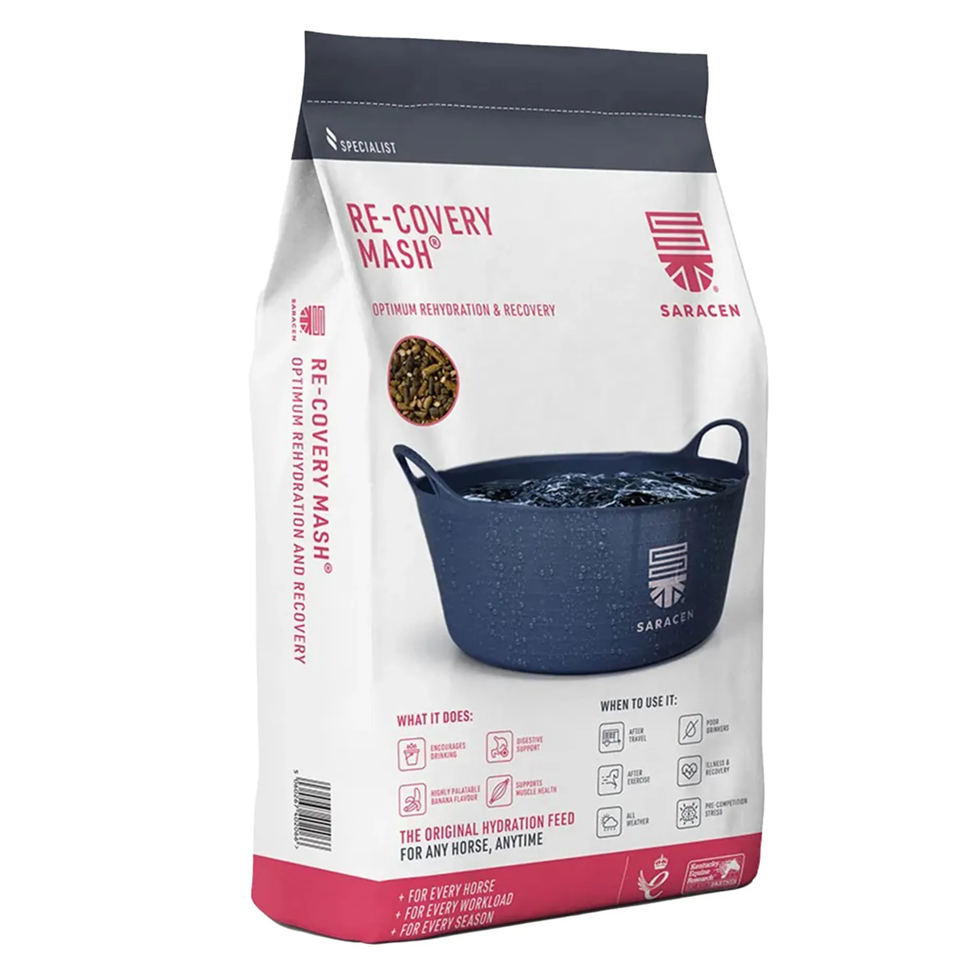 If being fed to a performance horse Saracen RE-COVERY MASH™ can be fed up to 3kg per day as part of an electrolyte replenishment programme. Saracen always recommend that advice should be sought when determining optimum electrolyte supplementation programmes.