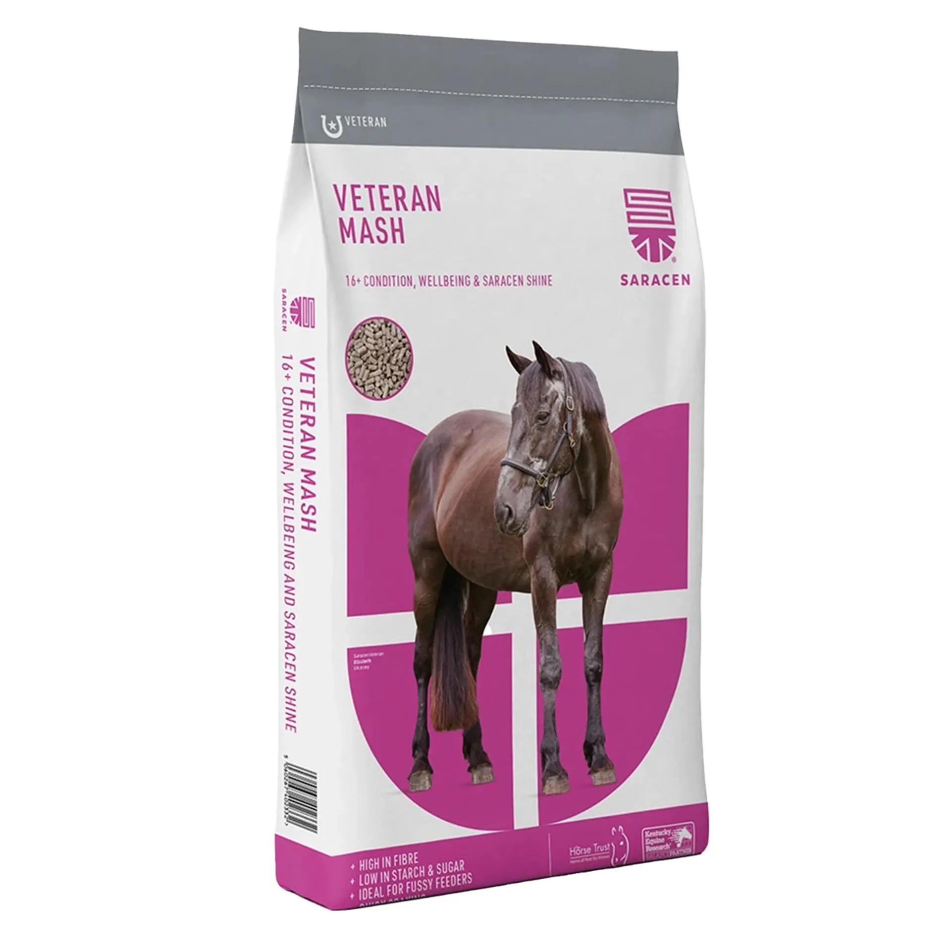 Saracen Veteran Mash has been formulated to provide optimum nutrition to horses and ponies who have reached the age and physiological stage in their lives where they will benefit from specialist feeding and a higher calorie intake to maintain optimum body condition.